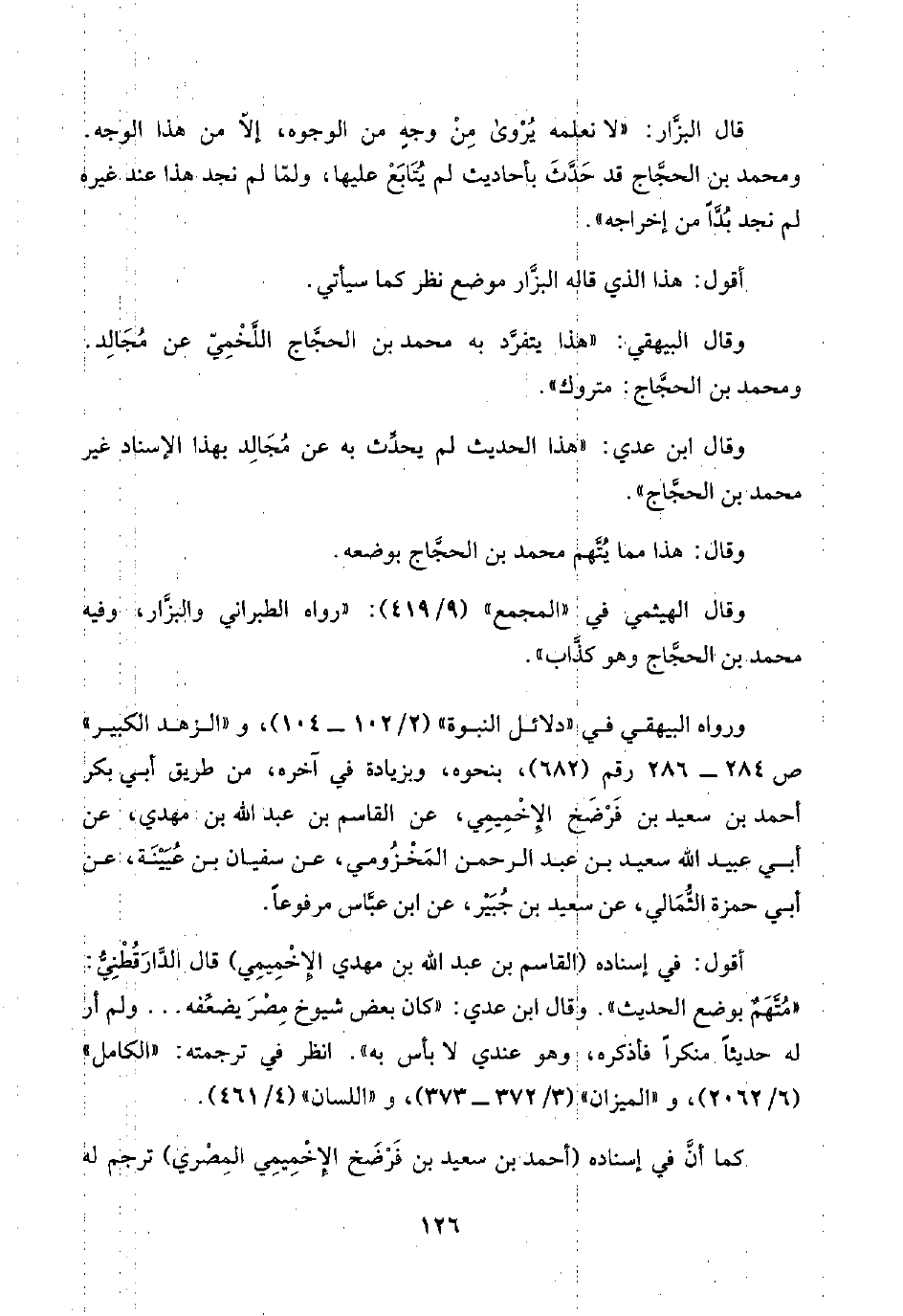 وقال ابن عدي: "هذا الحديث لم يحدِّث به عن مُجَالِد بهذا الإسناد غير محمد بن الحجَّاج".