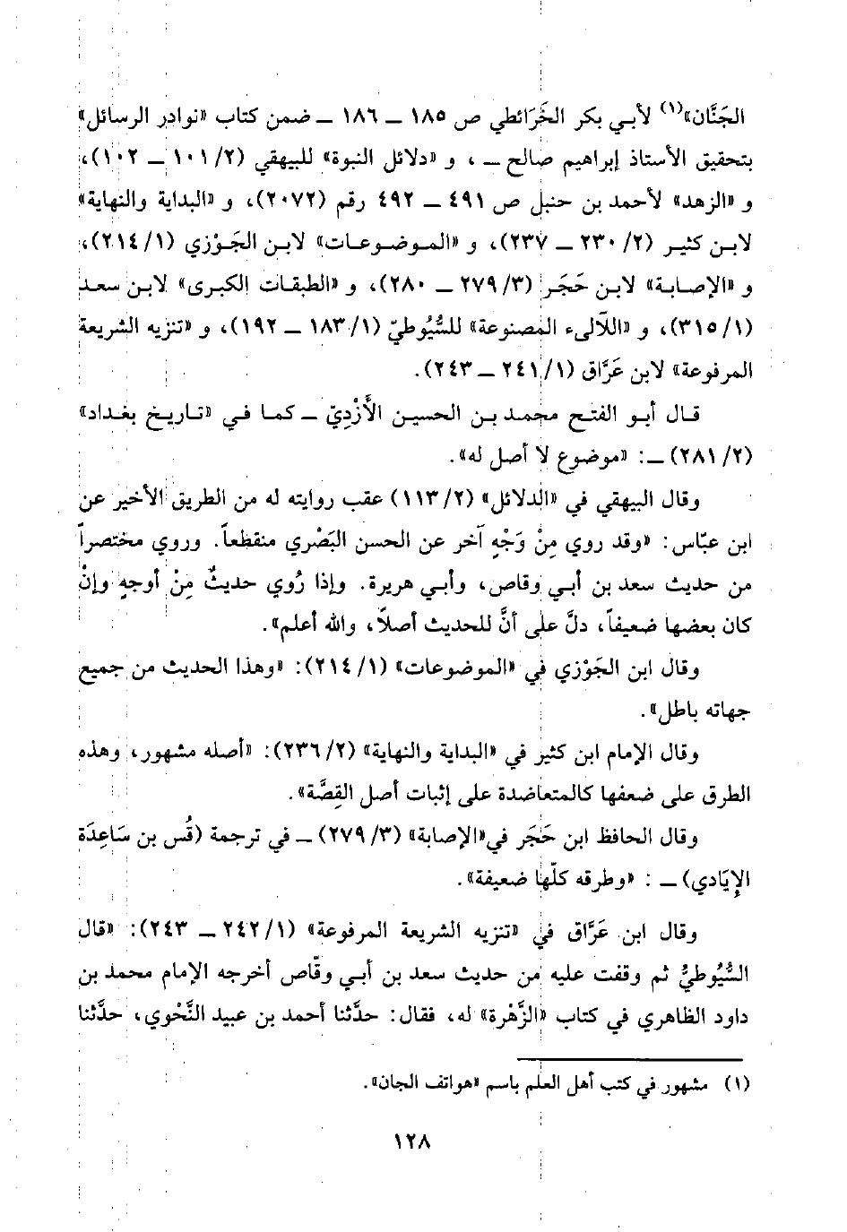 الجَنَّان" (¬١) لأبي بكر الخَرَائطي ص ١٨٥ - ١٨٦ - ضمن كتاب "نوادر الرسائل " بتحقيق الأستاذ إبراهيم صالح-، و"دلائل النبوة" للبيهقي (٢/ ١٠١ - ١٠٢)، و"الزهد" لأحمد بن حنبل ص ٤٩١ - ٤٩٢ رقم (٢٠٧٢)، و"البداية والنهاية" لابن كثير (٢/ ٢٣٠ - ٢٣٧)، و"الموضوعات" لابن الجَوْزي (١/ ٢١٤)، و"الإصابة" لابن حَجَر (٣/ ٢٧٩ - ٢٨٠)، و"الطبقات الكبرى" لابن سعد (١/ ٣١٥)، و"اللآلئ المصنوعة" للسُّيُوطيّ (١/ ١٨٣ - ١٩٣)، و"تنزيه الشريعة المرفوعة" لابن عَرَّاق (١/ ٢٤١ - ٢٤٣).