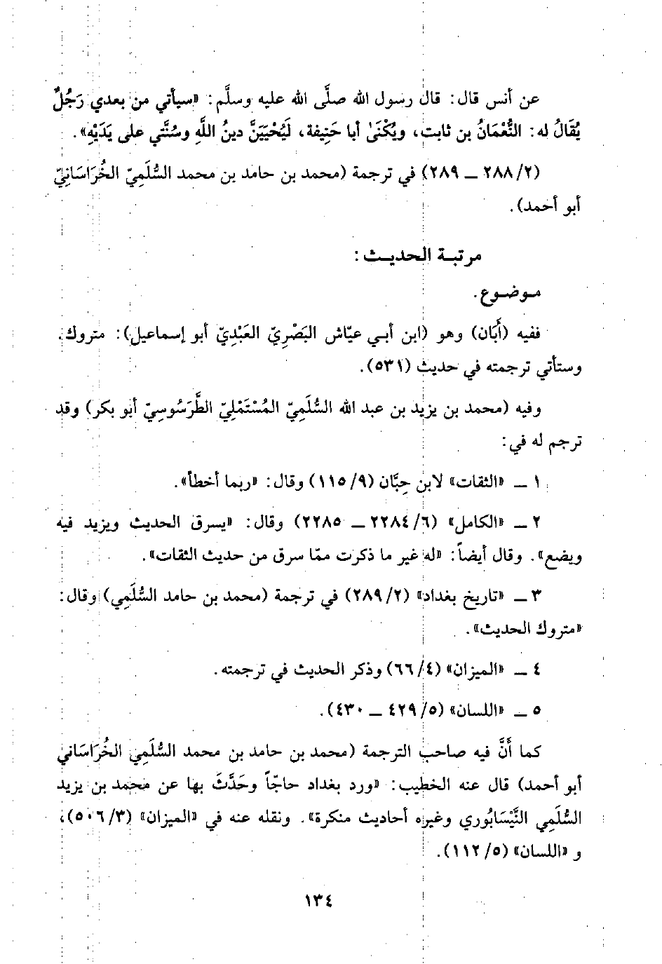 كما أنَّ فيه صاحب الترجمة (محمد بن حامد بن محمد السُّلَمِي الخُرَاسَاني أبو أحمد) قال عنه الخطيب: ورد بغداد حاجًّا وحَدَّثَ بها عن محمد بن يزيد السُّلَمِي النَّيْسَابُوري وغيره أحاديث منكرة". ونقله عنه في "الميزان" (٣/ ٥٠٦)، و"اللسان" (٥/ ١١٢).