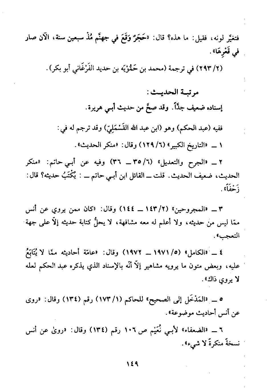 ٦ - "الضعفاء" لأبي نُعَيْم ص ١٠٦ رقم (١٣٤) وقال: "روى عن أنس نسخةً منكرةً لا شيء".