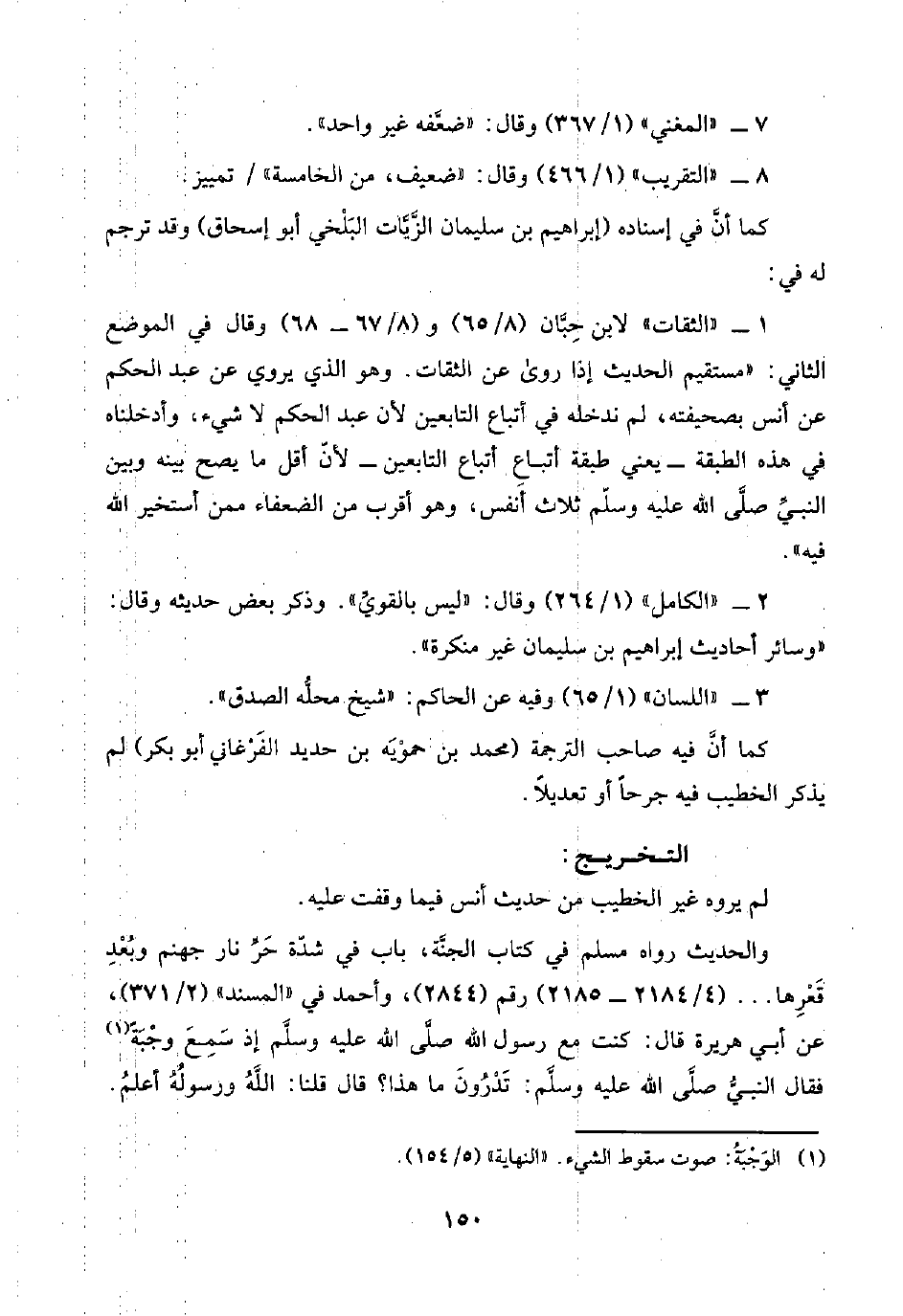 ١ - "الثقات" لابن حِبَّان (٨/ ٦٥) و (٨/ ٦٧ - ٦٨) وقال في الموضع الثاني: "مستقيم الحديث إذا روى عن الثقات. وهو الذي يروي عن عبد الحكم عن أنس بصحيفته، لم ندخله في أتباع التابعين لأن عبد الحكم لا شيء، وأدخلناه في هذه الطبقة -يعني طبقة أتباع أتباع التابعين- لأنّ أقل ما يصح بينه وبين النبيِّ صلَّى اللَّه عليه وسلَّم ثلاث أَنفس، وهو أقرب من الضعفاء ممن أستخير اللَّه فيه".
