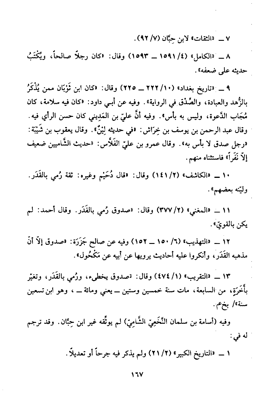 ١١ - "المغني" (٢/ ٣٧٧) وقال: "صدوق رُمي بالقَدَر. وقال أحمد: لم يكن بالقويّ".