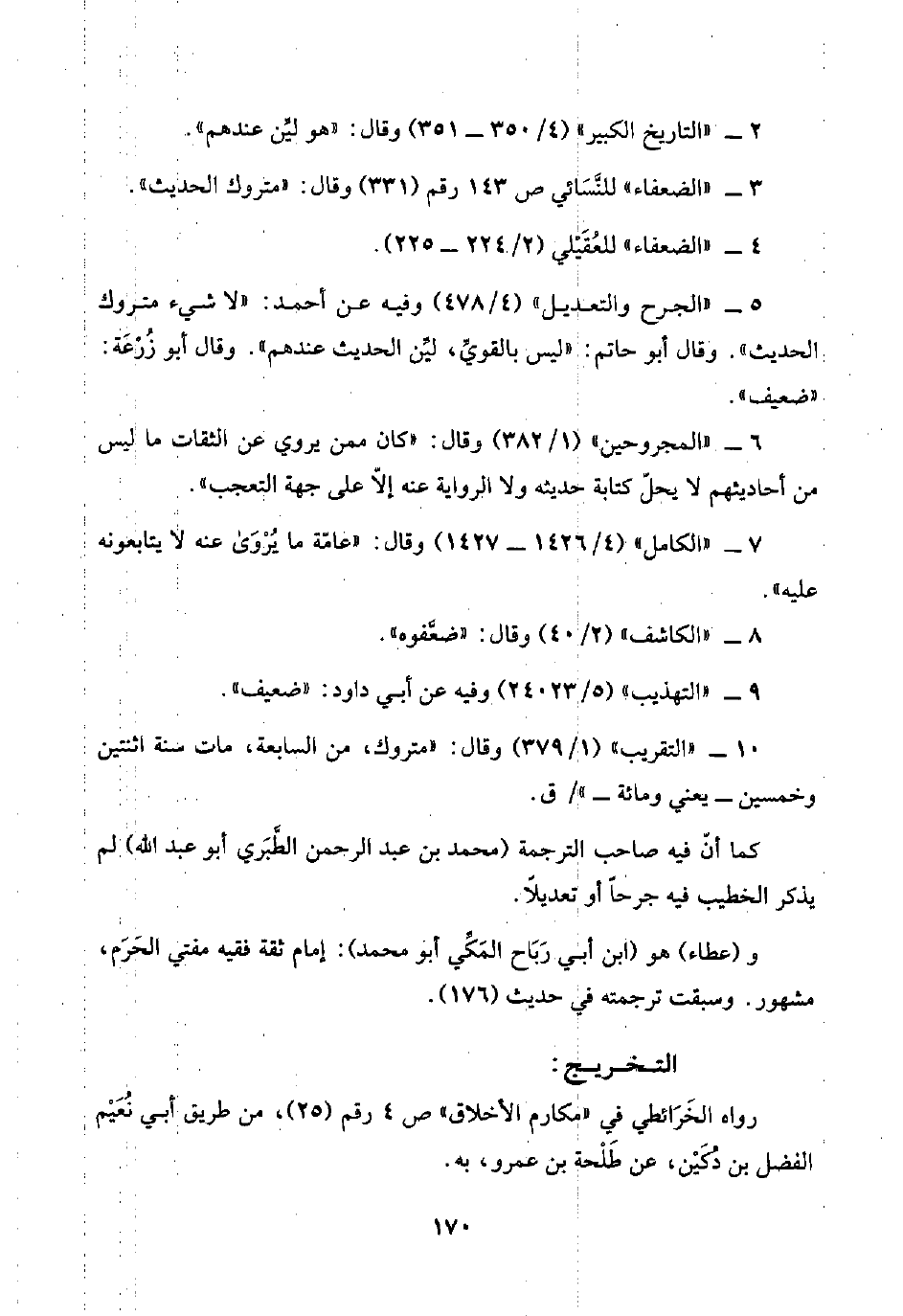 ٧ - "الكامل" (٤/ ١٤٢٦ - ١٤٢٧) وقال: "عامّة ما يُرْوَى عنه لا يتابعونه عليه".