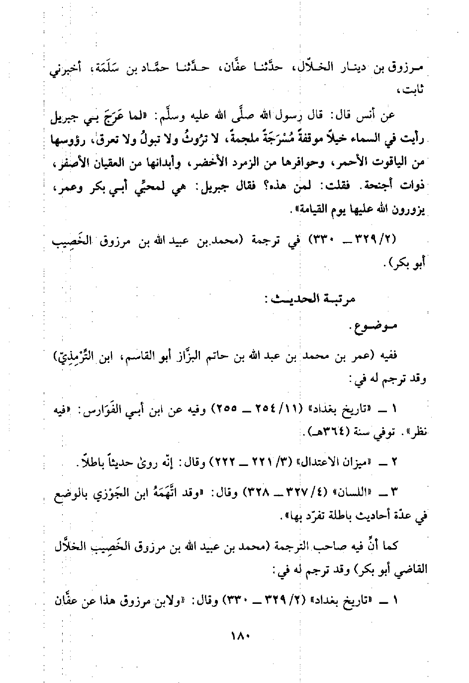 (٢/ ٣٢٩ - ٣٣٠) في ترجمة (محمد بن عبيد اللَّه بن مرزوق الخَصِيب أبو بكر).