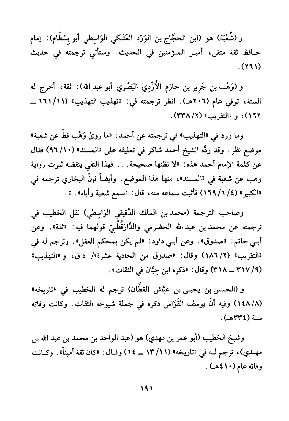 و(وَهْب بن جَرِير بن حازم الأَزْدِي البَصْري أبو عبد اللَّه): ثقة، أخرج له الستة، توفي عام (٢٠٦ هـ). انظر ترجمته في: "تهذيب التهذيب" (١١/ ١٦١ - ١٦٢)، و"التقريب" (٢/ ٣٣٨).