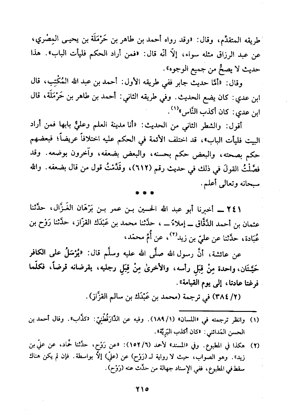 (¬١) وانظر ترجمته في "اللسان" (١/ ١٨٩). وفيه عن الدَّارَقُطْنِيّ: "كذَّاب". وقال أحمد بن الحسن المَدائني: "كان أكذب البَرِيَّة".