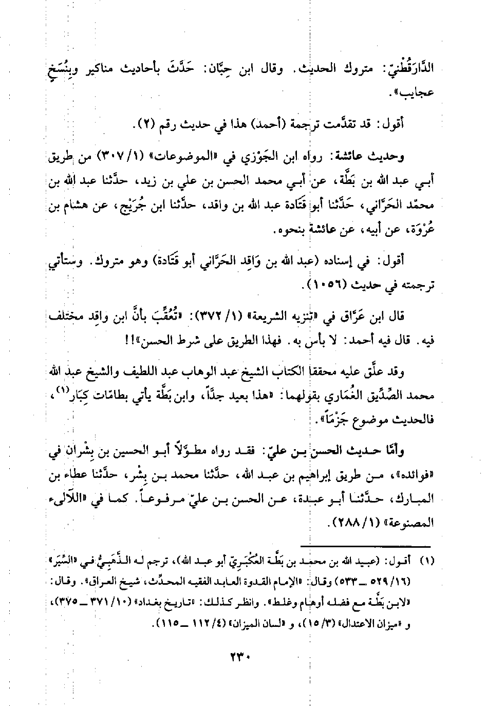 (¬١) أقول: (عبيد اللَّه بن محمد بن بَطَّة العُكْبَرِيّ أبو عبد اللَّه)، ترجم له الذَّهَبِيُّ في "السِّيَر" (١٦/ ٥٢٩ - ٥٣٣) وقال: "الإِمام القدوة العابد الفقيه المحدِّث، شيخ العراق". وقال: "لابن بَطَّة مع فضله أوهام وغلط". وانظر كذلك: "تاريخ بغداد" (١٠/ ٣٧١ - ٣٧٥)، و"ميزان الاعتدال" (٣/ ١٥)، و"لسان الميزان" (٤/ ١١٢ - ١١٥).