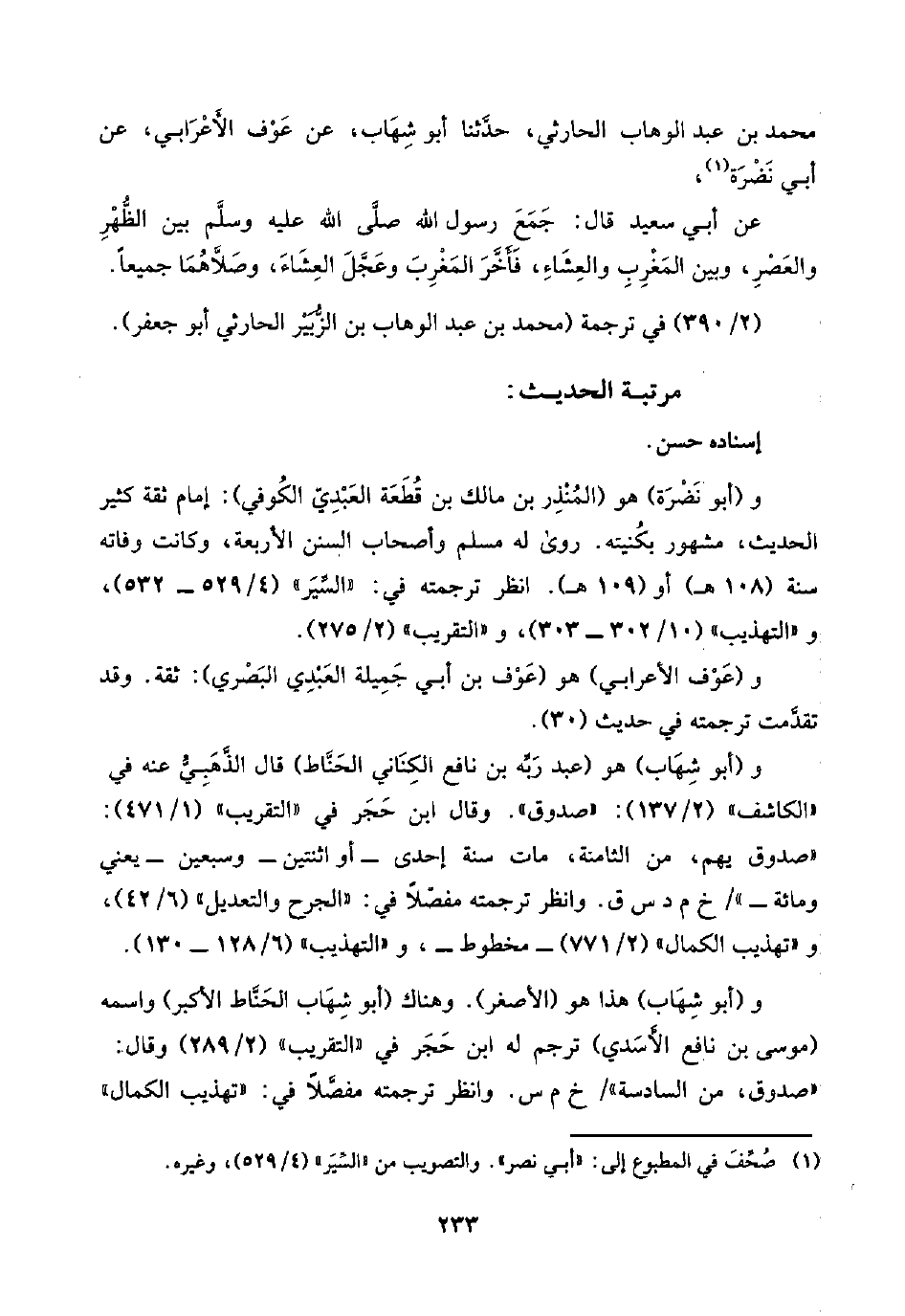 و(أبو نَضْرَة) هو (المُنْذِر بن مالك بن قُطَعَة العَبْدِيّ الكُوفي): إمام ثقة كثير الحديث، مشهور بكُنيته. روى له مسلم وأصحاب السنن الأربعة، وكانت وفاته سنة (١٠٨ هـ) أو (١٠٩ هـ). انظر ترجمته في: "السِّيَر" (٤/ ٥٢٩ - ٥٣٢)، و"التهذيب" (١٠/ ٣٠٢ - ٣٠٣)، و"التقريب" (٢/ ٢٧٥).