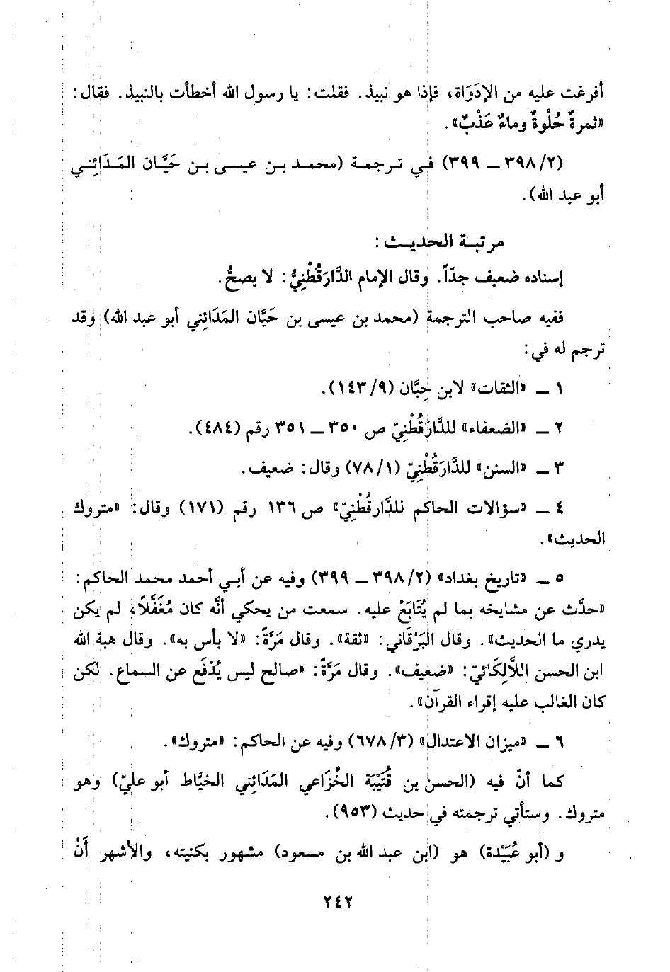 ٢ - "الضعفاء" للدَّارَقُطْنِيّ ص ٣٥٠ - ٣٥١ رقم (٤٨٤).
