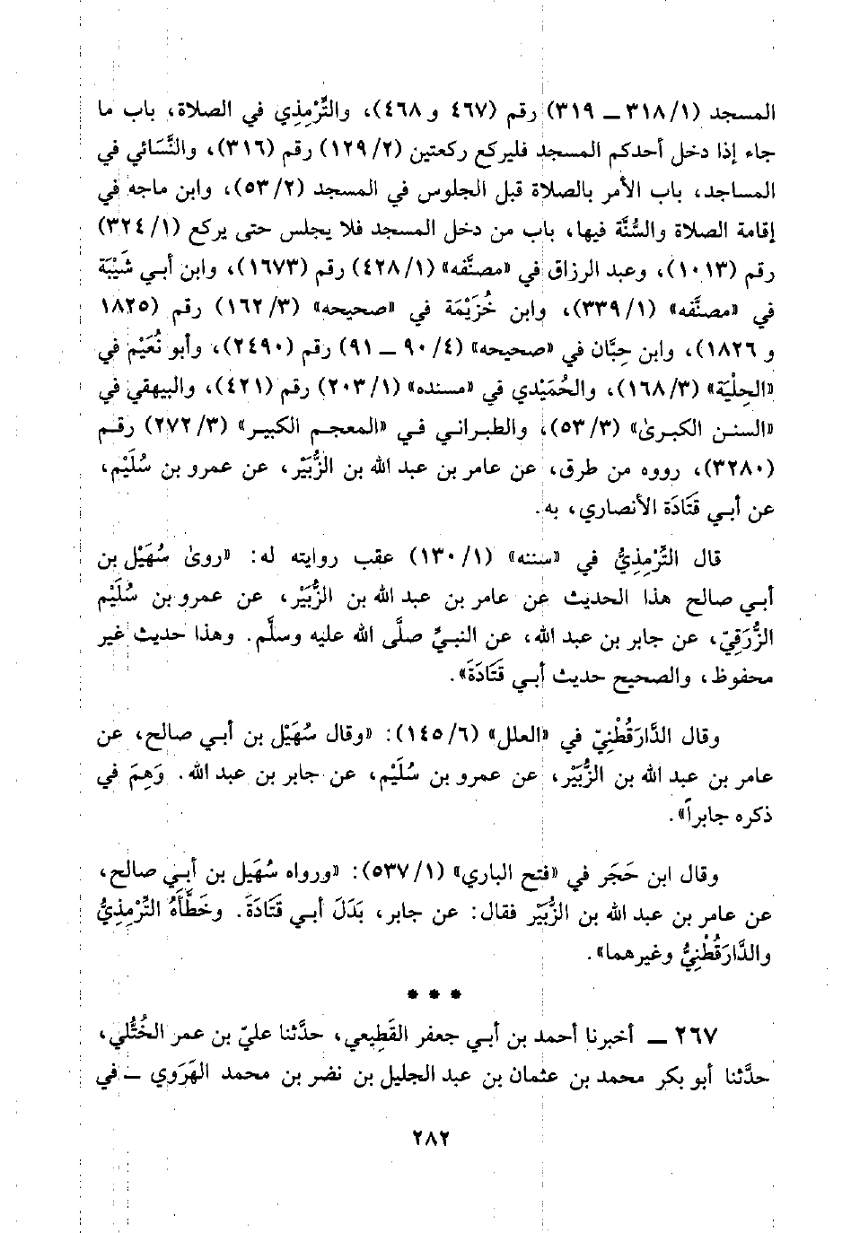 وقال ابن حَجَر في "فتح الباري" (١/ ٥٣٧٧): "ورواه سُهَيْل بن أبي صالح، عن عامر بن عبد اللَّه بن الزُّبَيْر فقال: عن جابر، بَدَل أبي قَتَادة. وخَطَّأَهُ التِّرْمِذِيُّ والدَّارَقُطْنِيُّ وغيرهما".