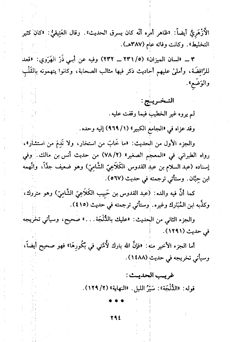 ٣ - "لسان الميزان" (٥/ ٢٣١ - ٢٣٢) وفيه عن أبي ذَرّ الهَرَوي: "قعد للرَّافِضَة، وأملى عليهم أحاديث ذكر فيها مثالب الصحابة، وكانوا يتهمونه بالقَلْبِ والوَضْعِ".