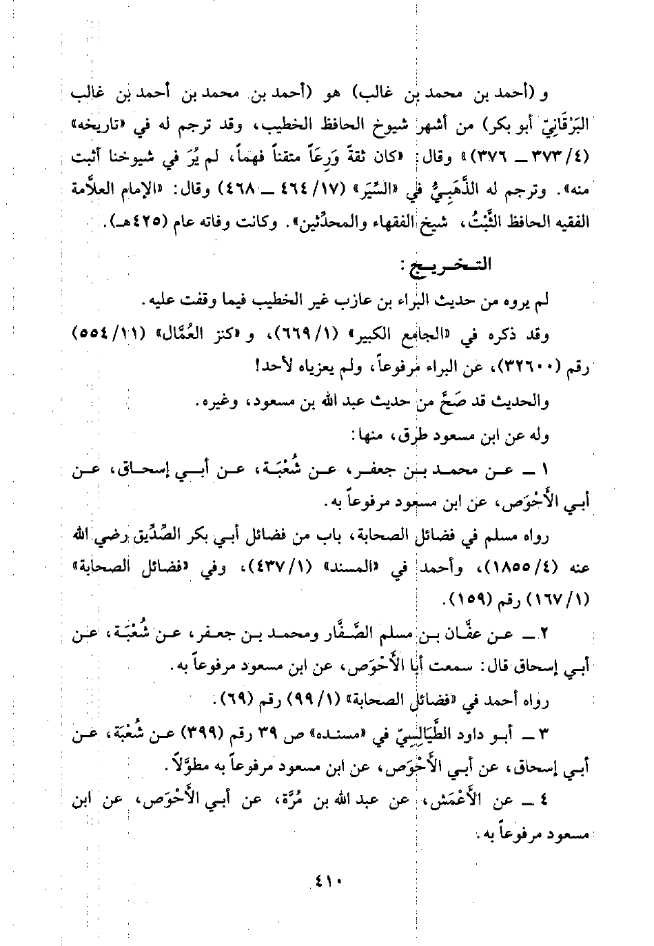 ١ - عن محمد بن جعفر، عن شُعْبَة، عن أبي إسحاق، عن أبي الأَحْوَص، عن ابن مسعود مرفوعًا به.