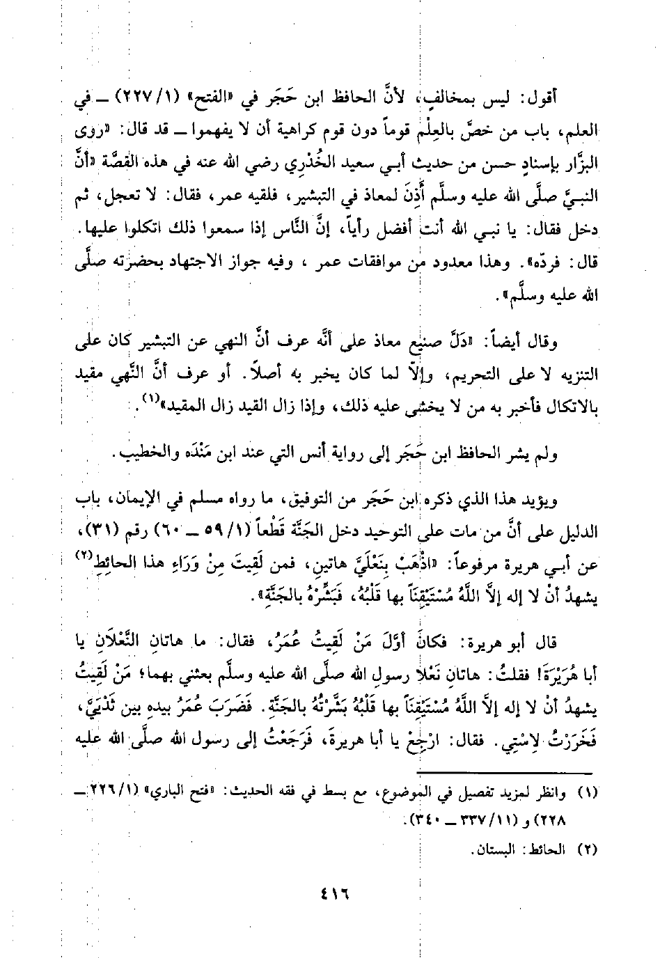 (¬١) وانظر لمزيد تفصيل في الموضوع، مع بسط في فقه الحديث: "فتح الباري" (١/ ٢٢٦ - ٢٢٨) و (١١/ ٣٣٧ - ٣٤٠).