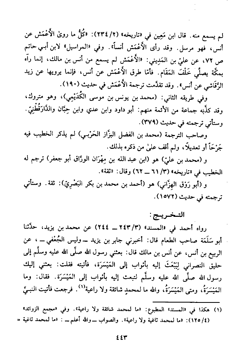 رواه أحمد في "المسند" (٣/ ٢٤٣ - ٢٤٤) عن محمد بن يزيد، حدَّثنا أبو سَلَمَة صاحب الطعام قال: أخبرني جابر بن يزيد -وليس الجُعْفي-، عن الربيع بن أنس، عن أنس بن مالك قال: بعثني رسول اللَّه صلَّى اللَّه عليه وسلَّم إلى حليق النصراني لِيَبْعَثَ إليه بأثواب إلى المَيْسَرَة، فأتيته فقلت: بعثني إليك رسول اللَّه صلَّى اللَّه عليه وسلَّم لتبعث إليه بأثواب إلى المَيْسَرَة. فقال: وما المَيْسَرَةُ، ومتى المَيْسَرَةُ، واللَّه ما لمحمدٍ شائقة ولا راعية (¬١). فرجعت فأتيت النبيَّ