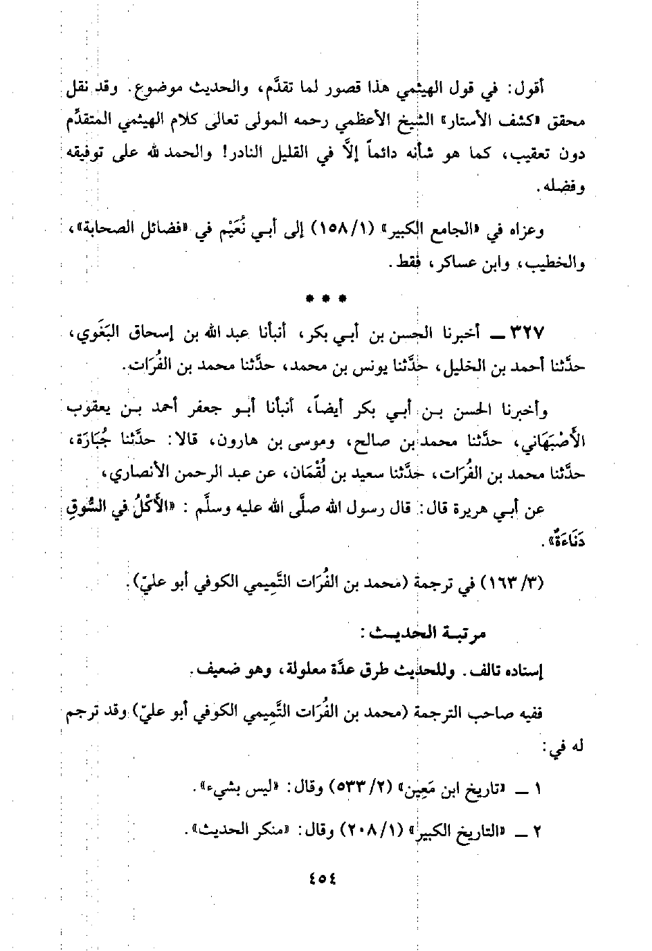 أقول: في قول الهيثمي هذا قصور لما تقدَّم، والحديث موضوع. وقد نقل محقق "كشف الأستار" الشيخ الأعظمي رحمه المولى تعالى كلام الهيثمي المتقدِّم دون تعقيب، كما هو شأنه دائمًا إلَّا في القليل النادر! والحمد للَّه على توفيقه وفضله.