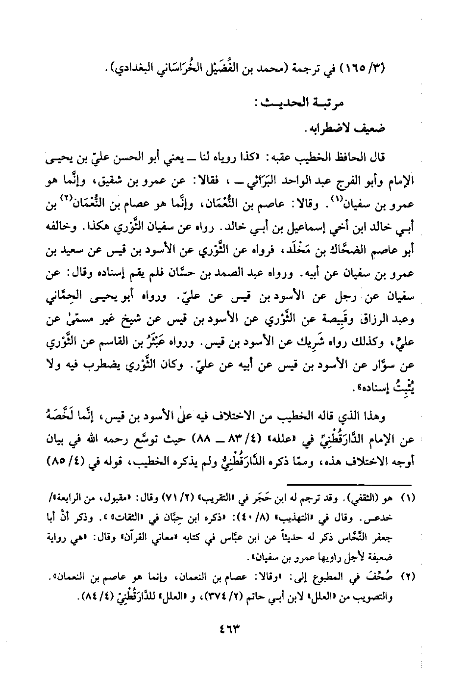 (٣/ ١٦٥) في ترجمة (محمد بن الفُضَيْل الخُرَاسَاني البغدادي).