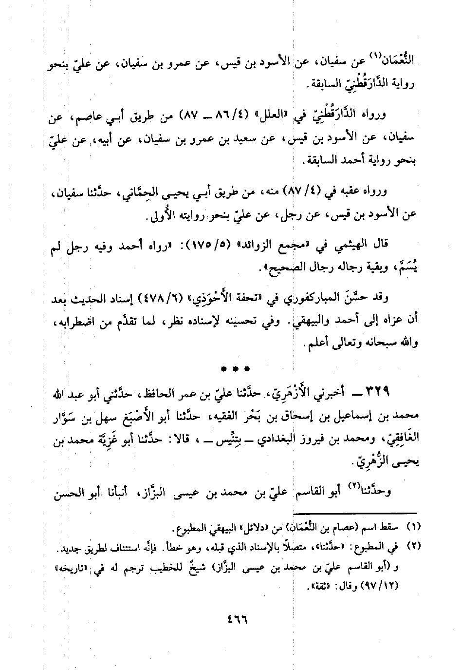 النُّعْمَان (¬١) عن سفيان، عن الأسود بن قيس، عن عمرو بن سفيان، عن عليّ بنحو رواية الدَّارَقُطْنِيّ السابقة.