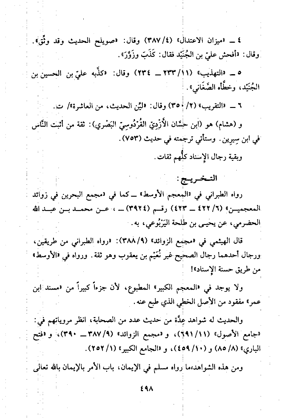 ولا يوجد في "المعجم الكبير" المطبوع، لأن جزءًا كبيرًا من "مسند ابن عمر" مفقود من الأصل الخطي الذي طبع عنه.