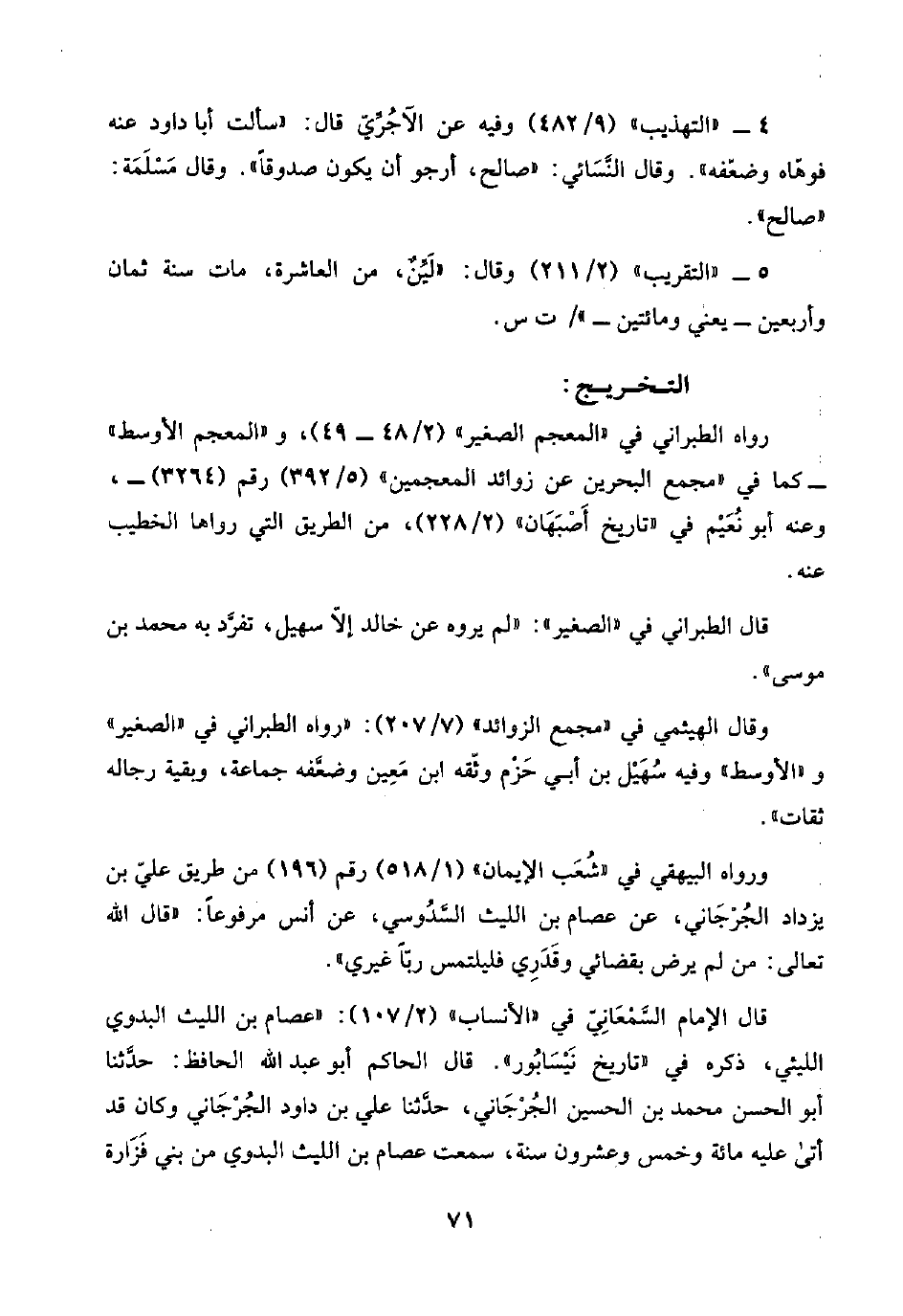 ٤ - "التهذيب" (٩/ ٤٨٢) وفيه عن الآجُرِّيّ قال: "سألت أبا داود عنه فوهّاه وضعّفه". وقال النَّسَائي: "صالح، أرجو أن يكون صدوقًا". وقال مَسْلَمَة: "صالح".
