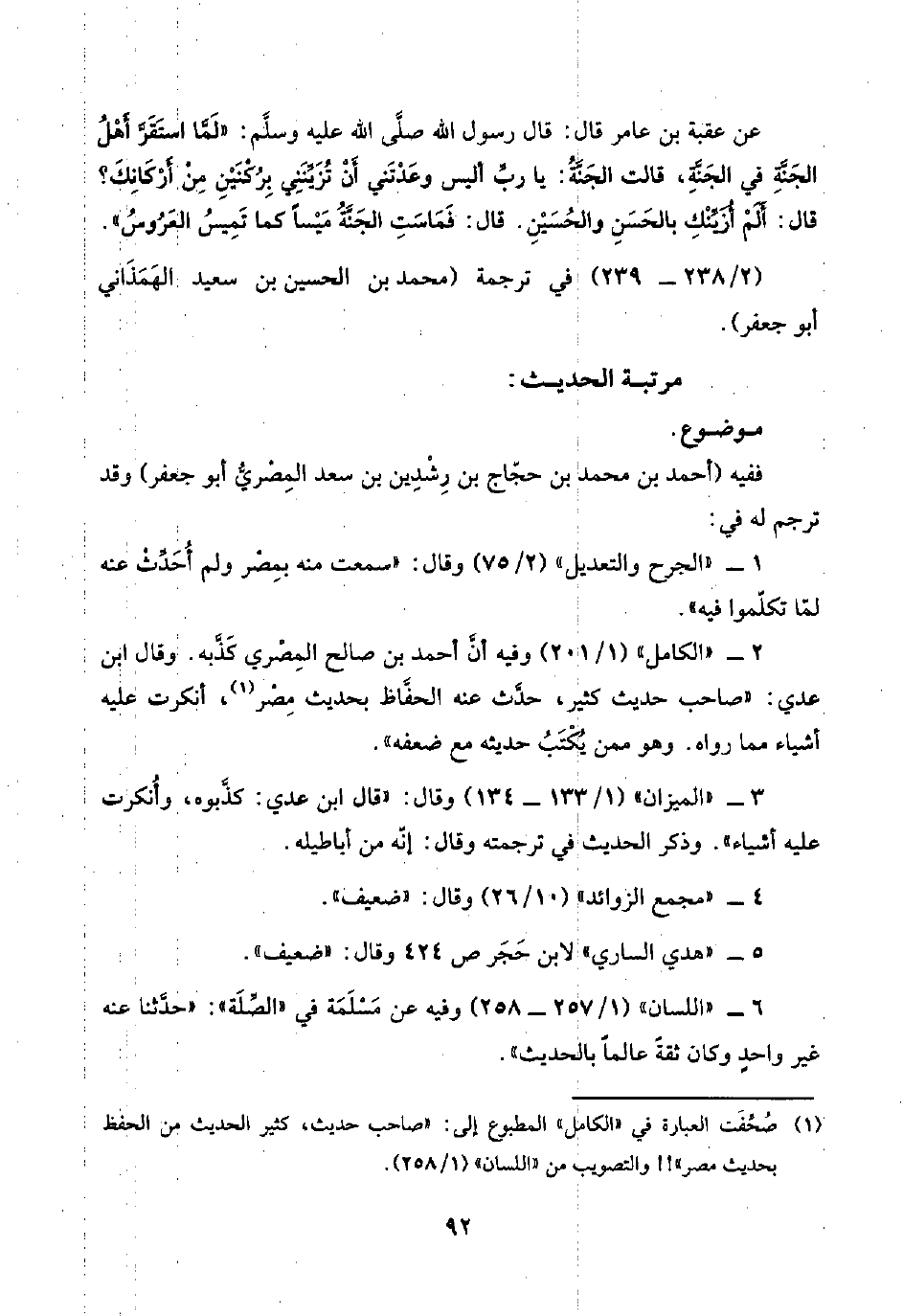 ٣ - "الميزان" (١/ ١٣٣ - ١٣٤) وقال: "قال ابن عدي: كذَّبوه، وأُنكرت عليه أشياء". وذكر الحديث في ترجمته وقال: إنَّه من أباطيله.
