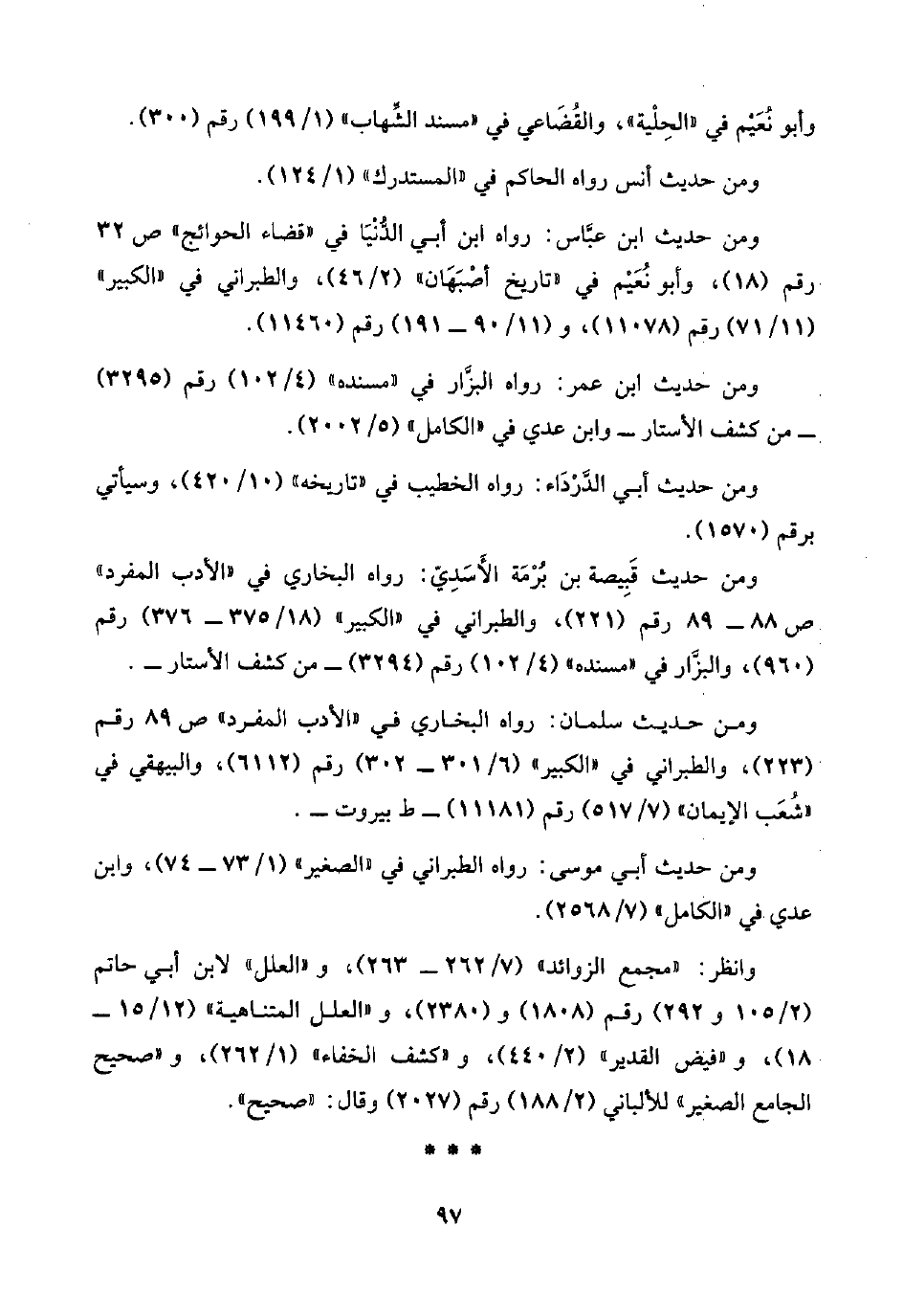 وانظر: "مجمع الزوائد" (٧/ ٢٦٢ - ٢٦٣)، و"العلل" لابن أبي حاتم (٢/ ١٠٥ و ٢٩٢) رقم (١٨٠٨) و (٢٣٨٠)، و"العلل المتناهية" (١٢/ ١٥ - ١٨)، و"فيض القدير" (٢/ ٤٤٠)، و"كشف الخفاء" (١/ ٢٦٢)، و"صحيح الجامع الصغير" للألباني (٢/ ١٨٨) رقم (٢٠٢٧) وقال: "صحيح".