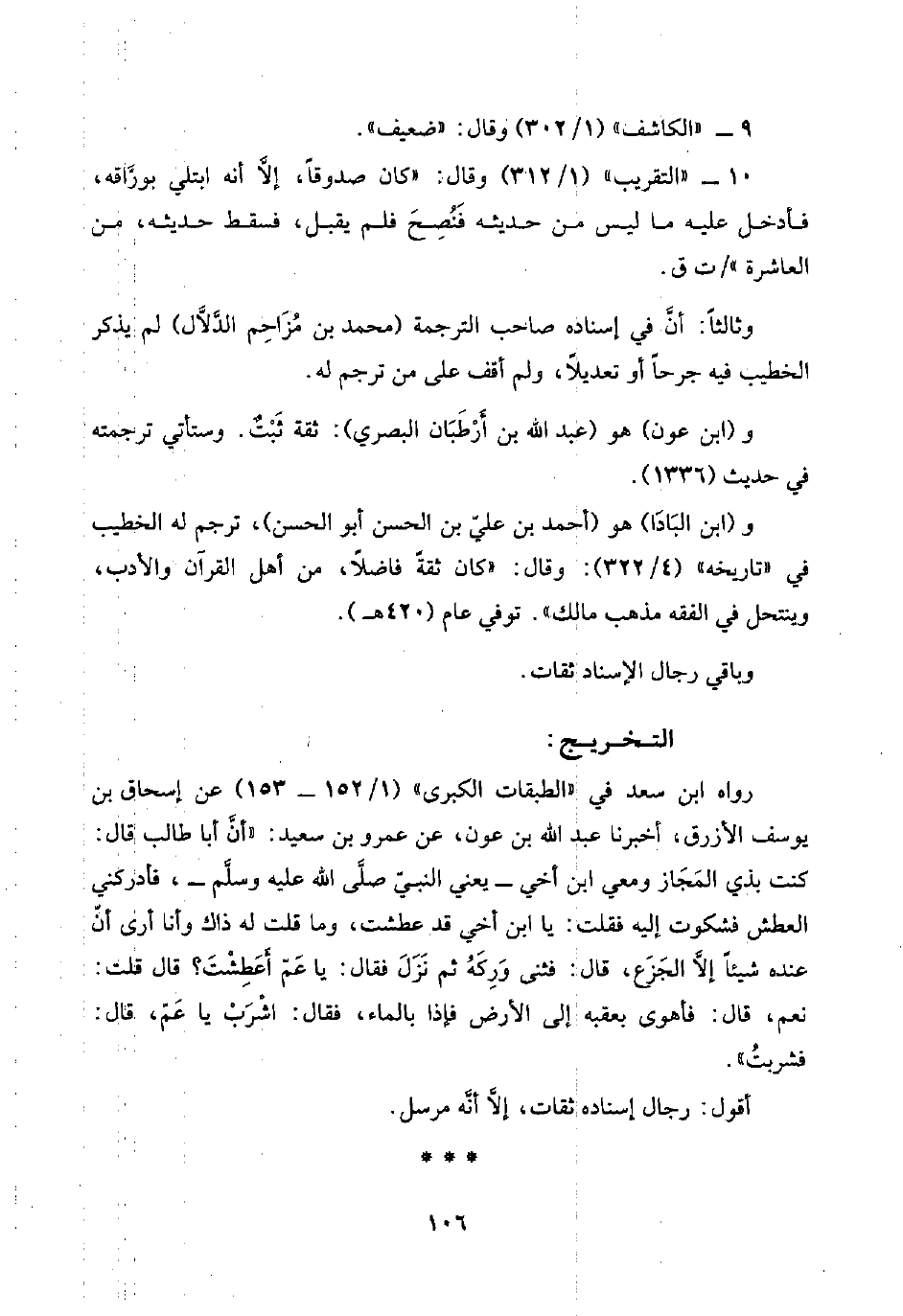 ١٠ - "التقريب" (١/ ٣١٢) وقال: "كان صدوقًا، إلَّا أنَّه ابتلي بورَّاقه، فأدخل عليه ما ليس من حديثه فَنُصِحَ فلم يقبل، فسقط حديثه، من العاشرة"/ ت ق.