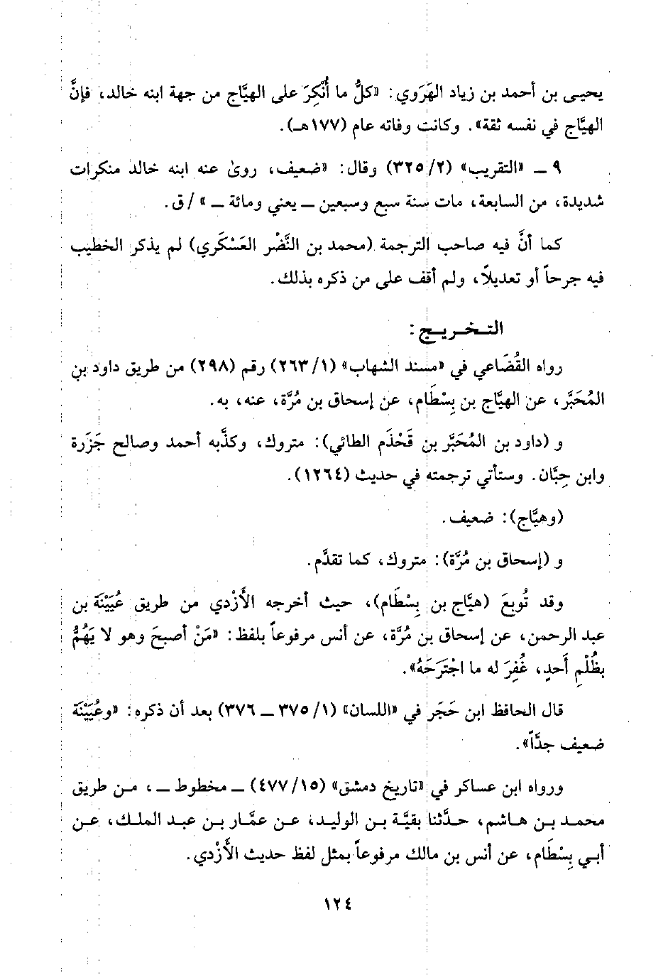 ٩ - "التقريب" (٢/ ٣٢٥) وقال: "ضعيف، روى عنه ابنه خالد منكرات شديدة، من السابعة، مات سنة سبع وسبعين -يعني ومائة-"/ ق.