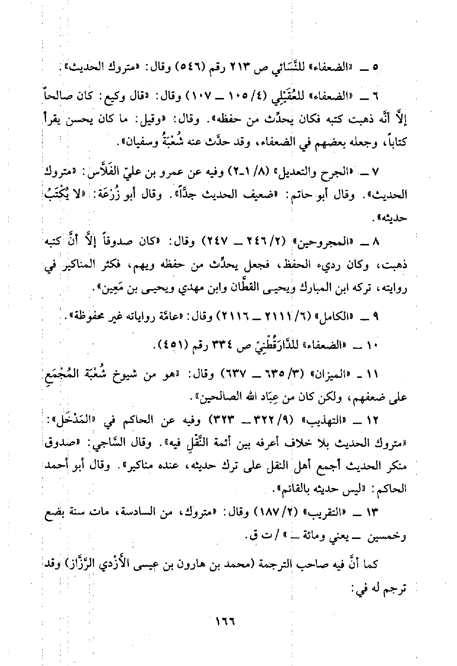 ٥ - "الضعفاء" للنَّسَائي ص ٢١٣ رقم (٥٤٦) وقال: "متروك الحديث".