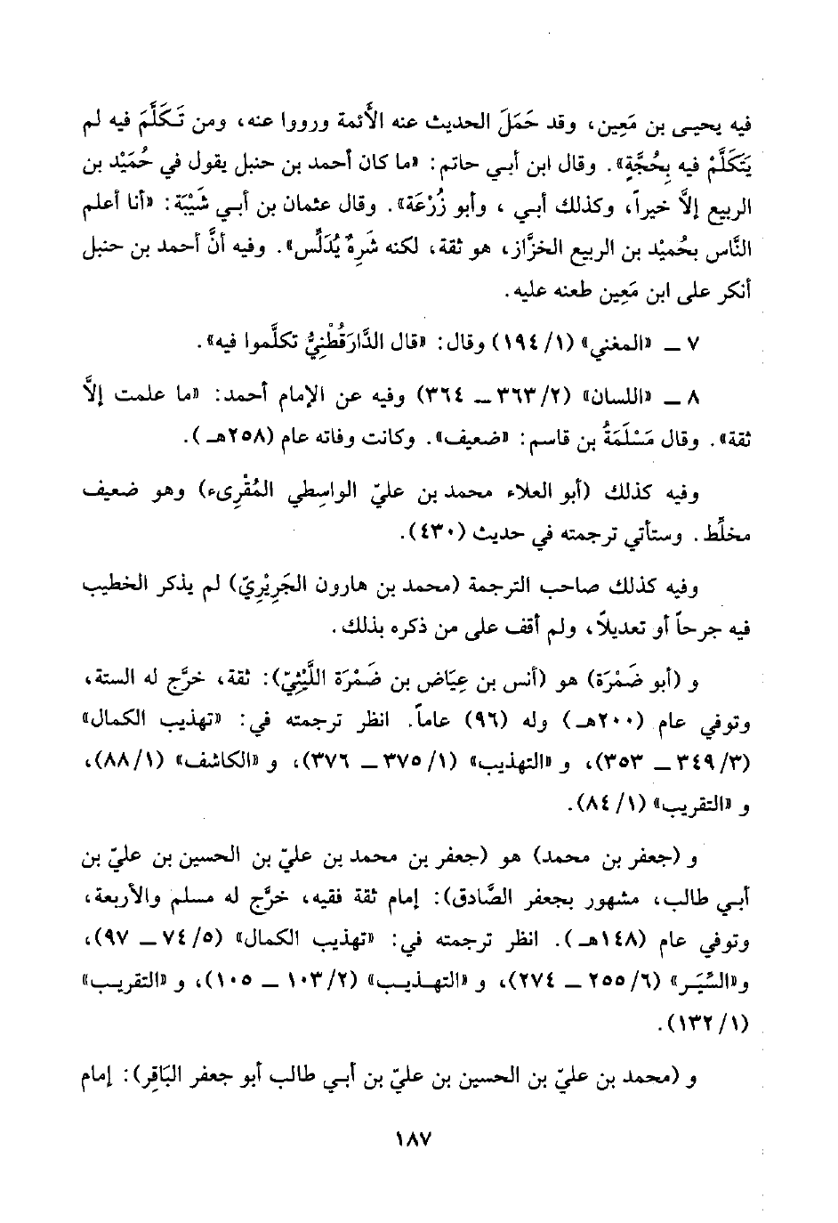 ٨ - "اللسان" (٢/ ٣٦٣ - ٣٦٤) وفيه عن الإمام أحمد: "ما علمت إلَّا ثقة". وقال مَسْلَمَةُ بن قاسم: "ضعيف". وكانت وفاته عام (٢٥٨ هـ).