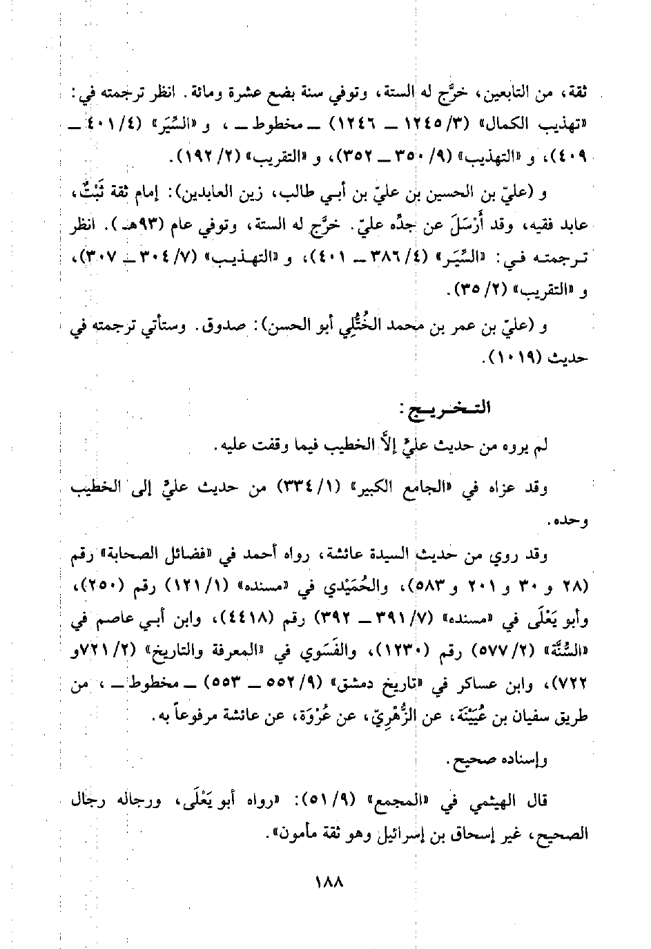 و(عليّ بن الحسين بن عليّ بن أبي طالب، زين العابدين): إمام ثقة ثَبْتٌ، عابد فقيه، وقد أَرْسَلَ عن جدِّه عليّ. خرَّج له الستة، وتوفي عام (٩٣ هـ). انظر ترجمته في: "السِّيَر" (٤/ ٣٨٦ - ٤٠١)، و"التهذيب" (٧/ ٣٠٤ - ٣٠٧)، و"التقريب" (٢/ ٣٥).