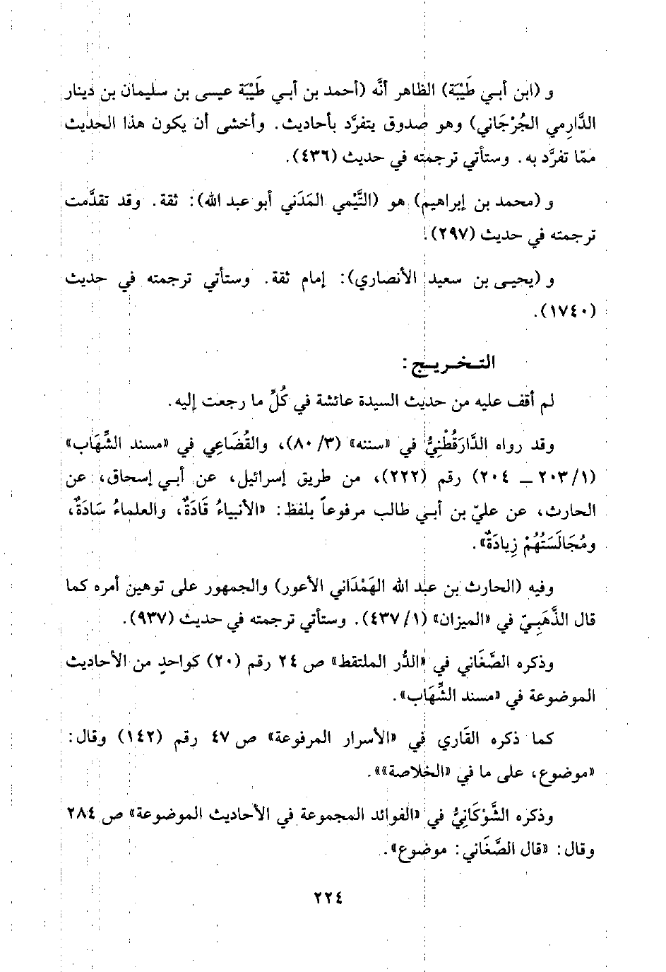 وذكره الصَّغَاني في "الدُّر الملتقط" ص ٢٤ رقم (٢٠) كواحدٍ من الأحاديث الموضوعة في "مسند الشِّهَاب".