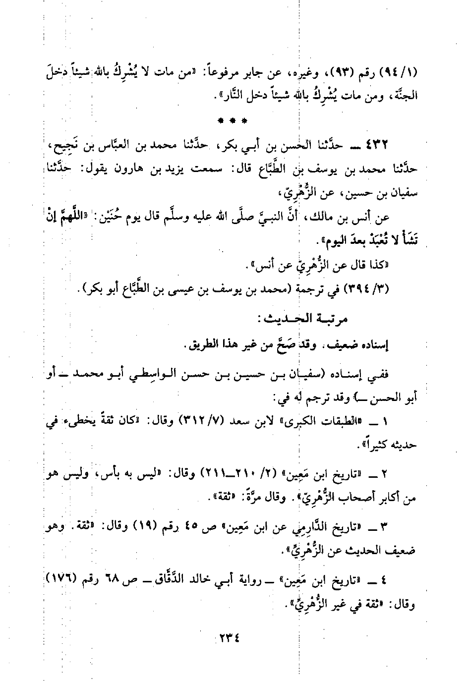٤٣٢ - حدَّثنا الحسن بن أبي بكر، حدَّثنا محمد بن العبَّاس بن نَجِيح، حدَّثنا محمد بن يوسف بن الطَّبَّاع قال: سمعت يزيد بن هارون يقول: حدَّثنا سفيان بن حسين، عن الزُّهْرِيّ،