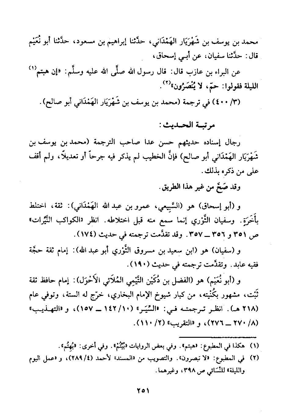 محمد بن يوسف بن شَهْرَيَار الهَمْدَاني، حدَّثنا إبراهيم بن مسعود، حدَّثنا أبو نُعَيْم قال: حدَّثنا سفيان، عن أبي إسحاق،