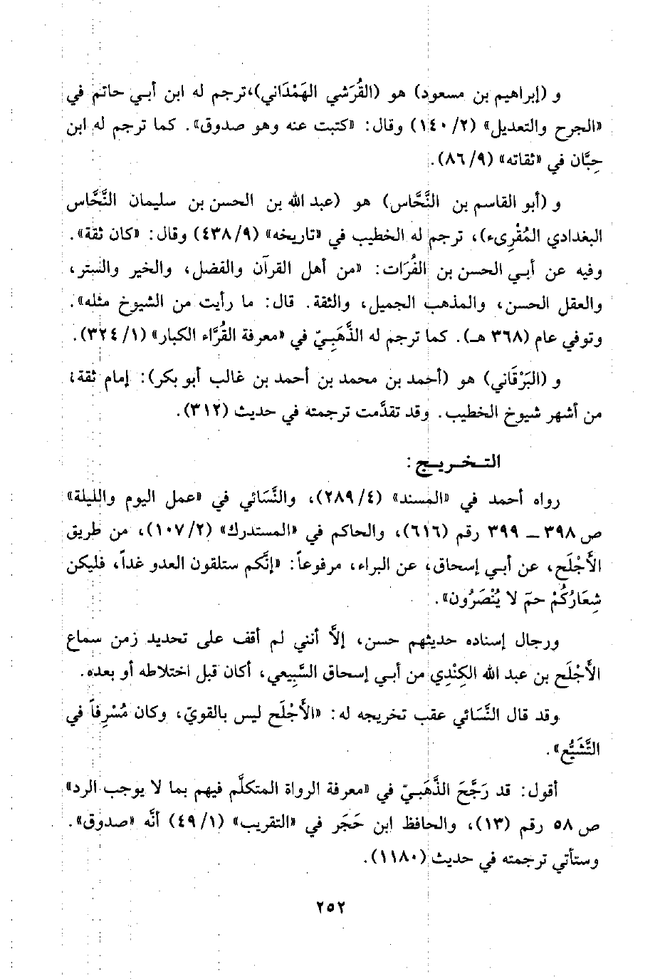 وقد قال النَّسَائي عقب تخريجه له: "الأَجْلَح ليس بالقويّ، وكان مُسْرِفًا في التَّشَيُّع".