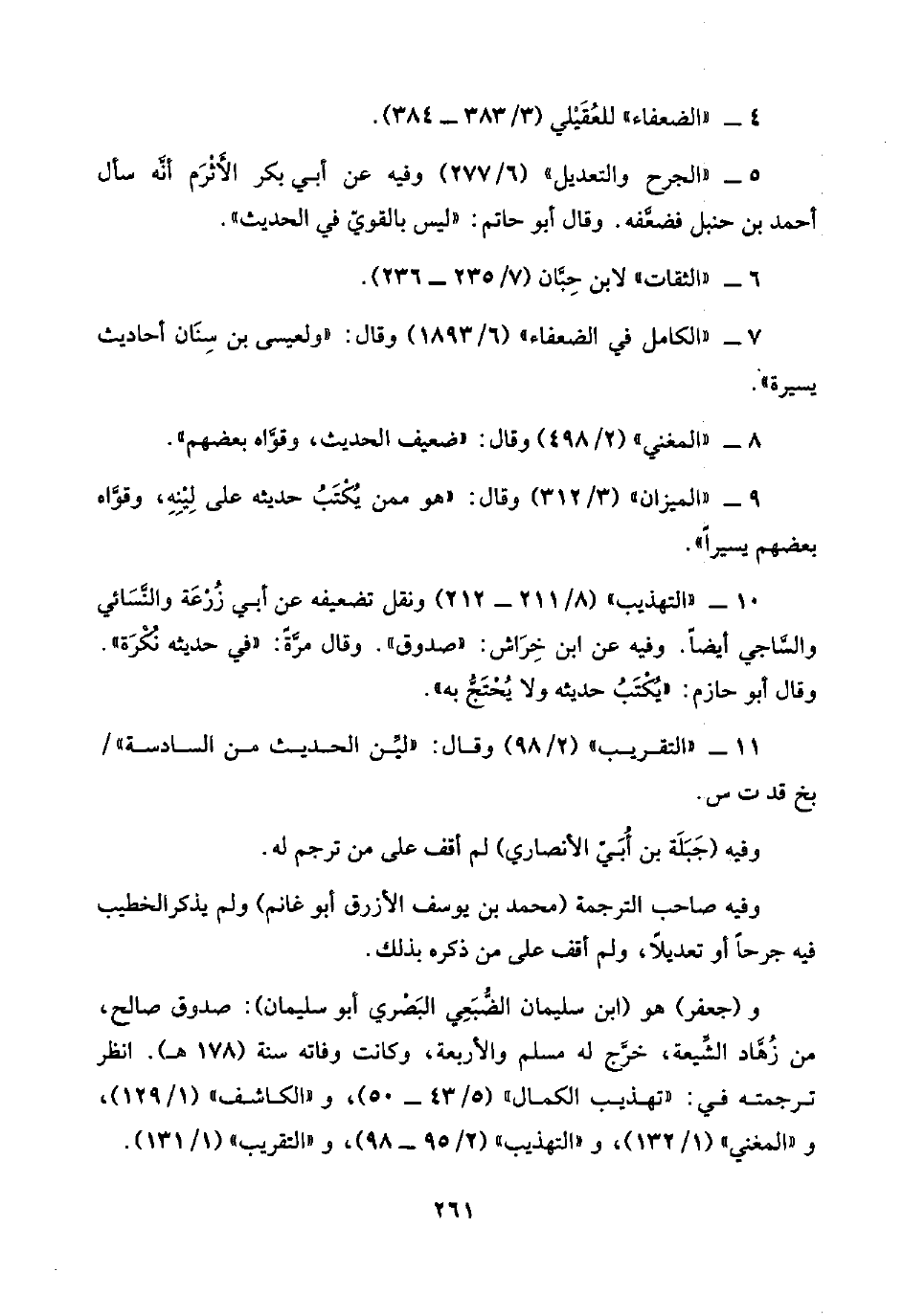 ٥ - "الجرح والتعديل" (٦/ ٢٧٧) وفيه عن أبي بكر الأَثْرَم أنَّه سأل أحمد بن حنبل فضعَّفه. وقال أبو حاتم: "ليس بالقويّ في الحديث".