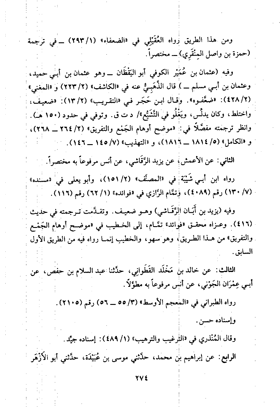 وفيه (يزيد بن أَبَان الرَّقَاشي) وهو ضعيف. وتقدَّمت ترجمته في حديث (٤١٦). وعزاه محقق "فوائد" تمَّام، إلى الخطيب في "موضح أوهام الجَمْع والتفريق" من هذا الطريق، وهو سهو، والخطيب إنَّما رواه فيه من الطريق الأول السابق.