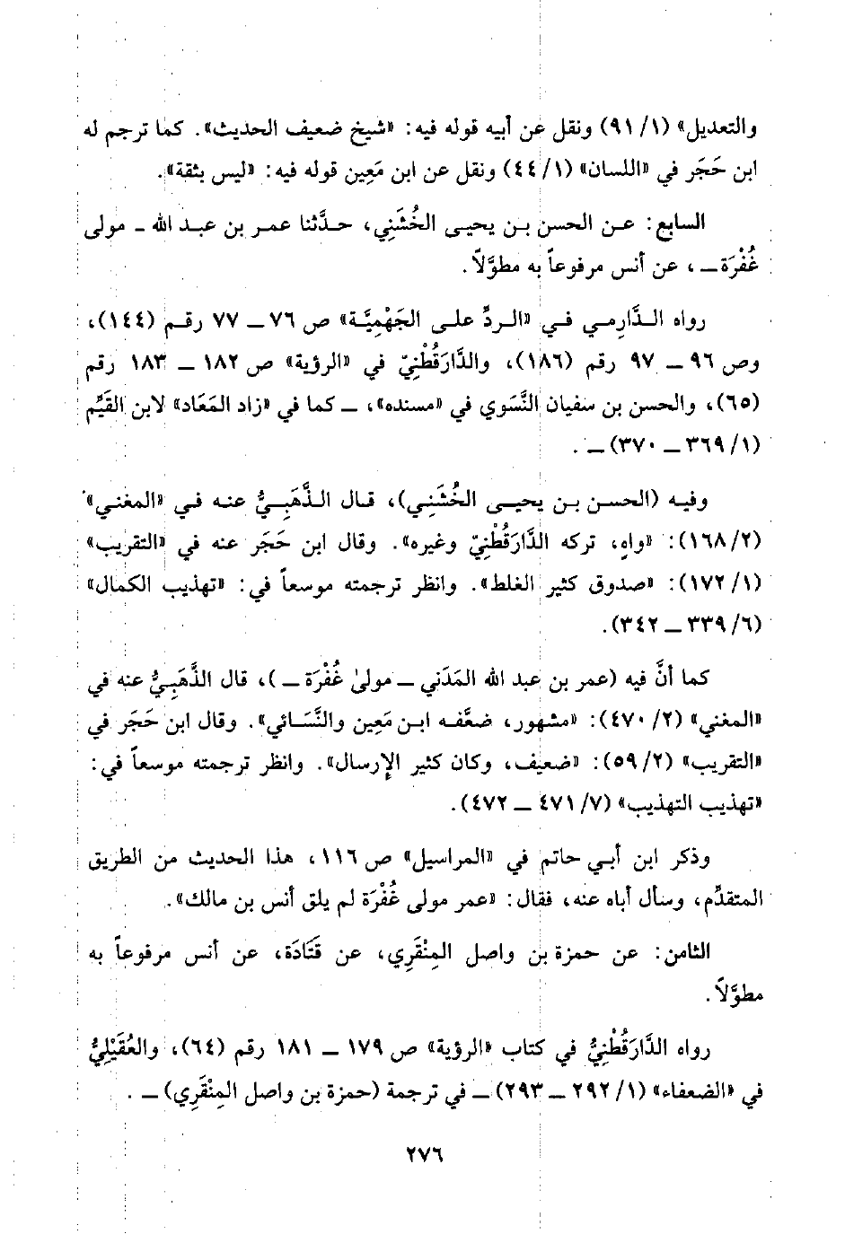 رواه الدَّارَقُطْنِيُّ في كتاب "الرؤية" ص ١٧٩ - ١٨١ رقم (٦٤)، والعُقَيْلِيُّ في "الضعفاء" (١/ ٢٩٢ - ٢٩٣) -في ترجمة (حمزة بن واصل المِنْقَرِي) -.