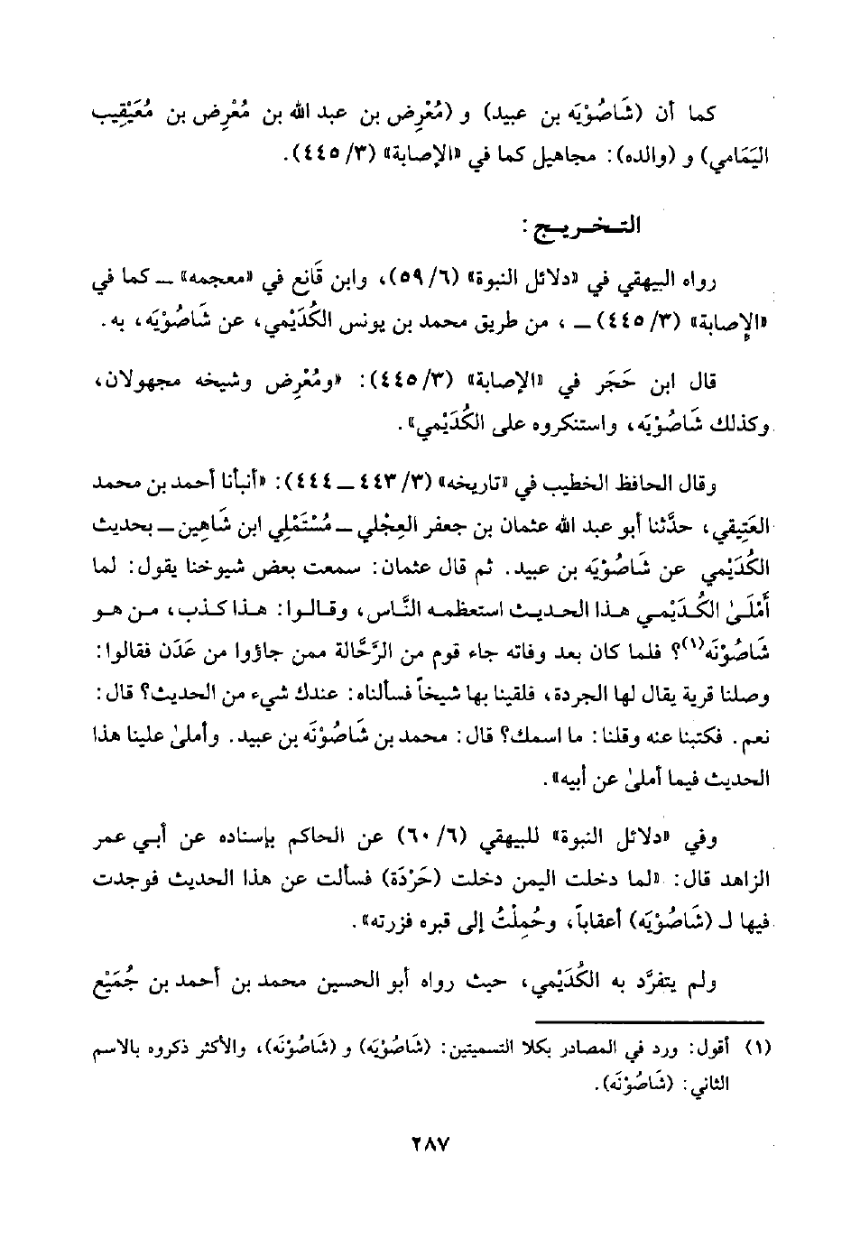 (¬١) أقول: ورد في المصادر بكلا التسميتين: (شَاصُوْيَه) و (شَاصُوْنَه)، والأكثر ذكروه بالاسم الثاني: (شَاصُونَه).