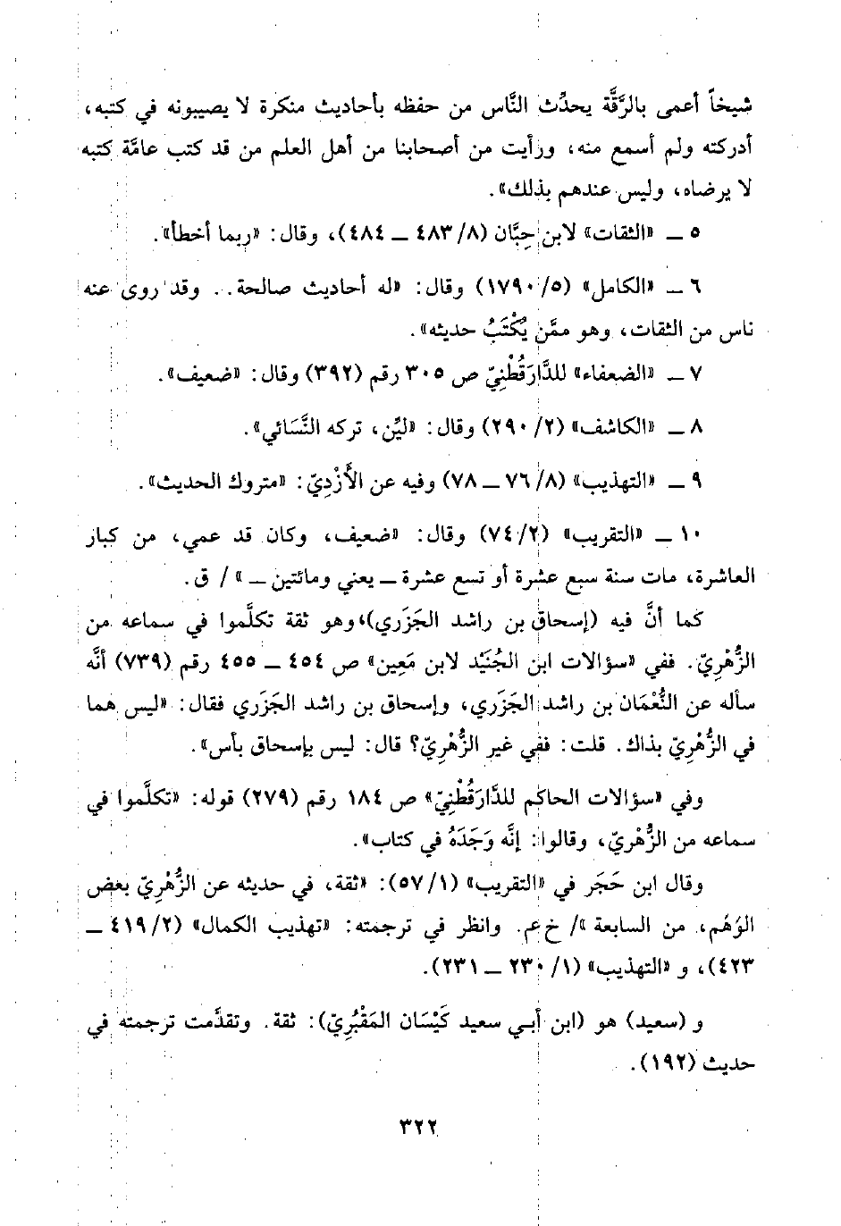 ٧ - "الضعفاء" للدَّارَقُطْنِيُّ ص ٣٠٥ رقم (٣٩٢) وقال: "ضعيف".