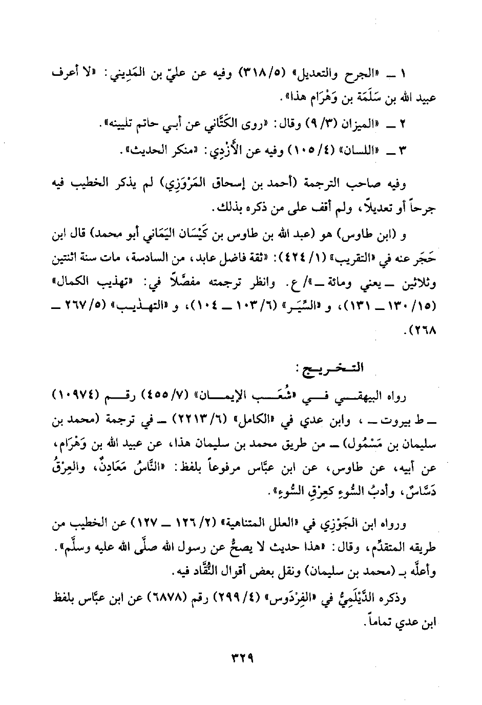٣ - "اللسان" (٤/ ١٠٥) وفيه عن الأَزْدِي: "منكر الحديث".
