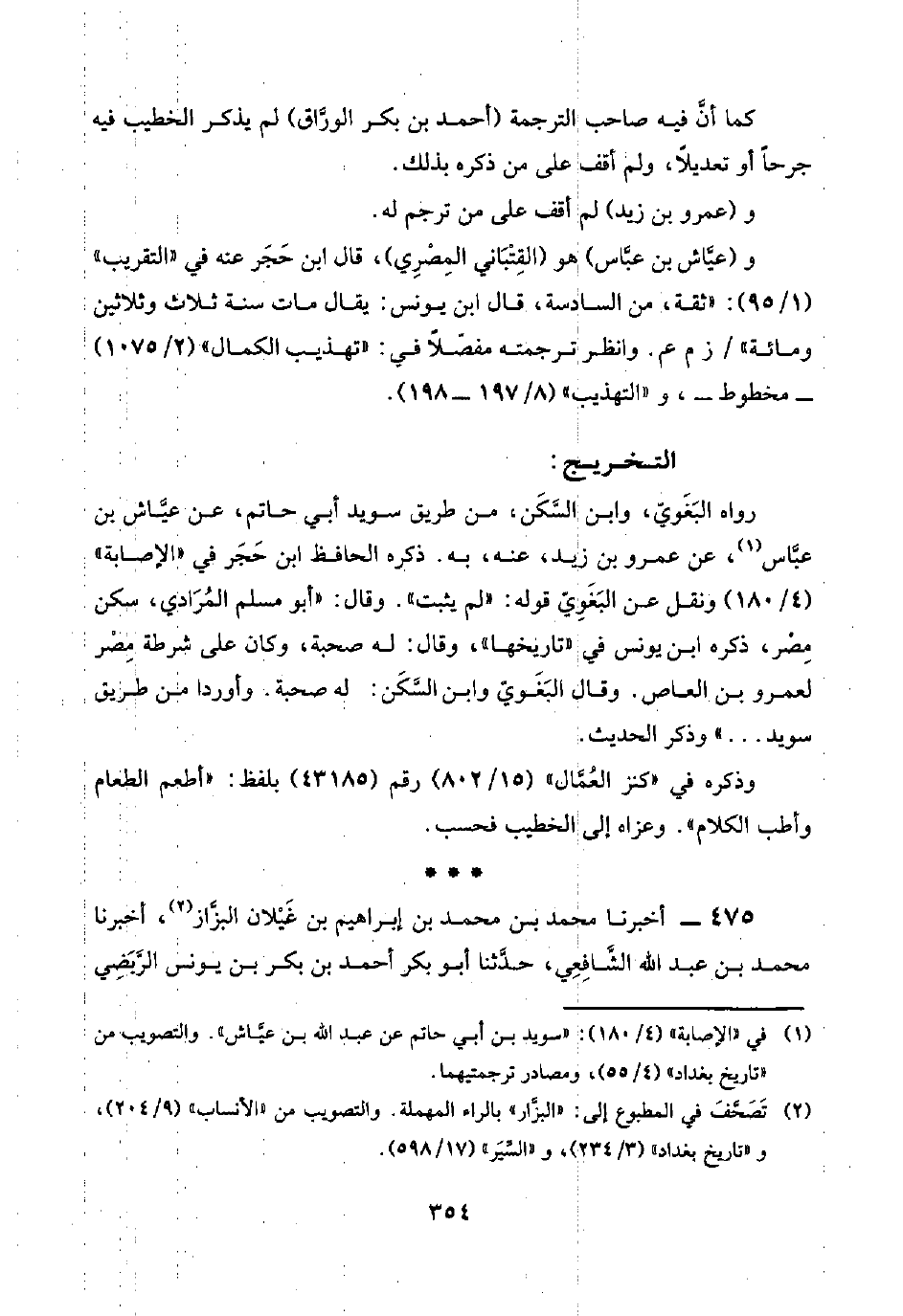 ٤٧٥ - أخبرنا محمد بن محمد بن إبراهيم بن غَيْلان البزَّاز (¬٢)، أخبرنا محمد بن عبد اللَّه الشَّافِعِي، حدَّثنا أبو بكر أحمد بن بكر بن يونس الرَّبَضِي