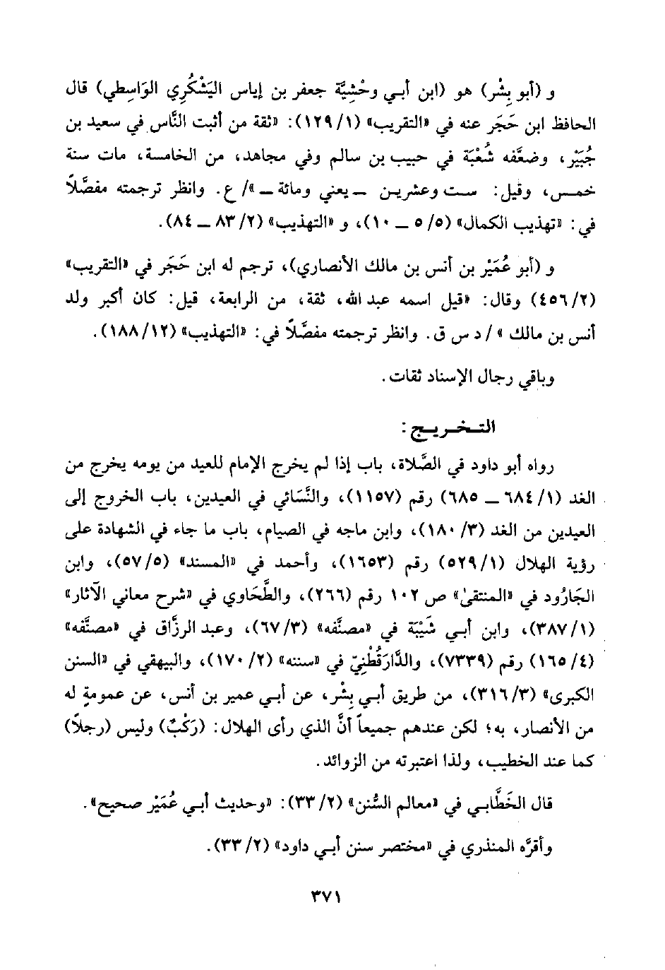 رواه أبو داود في الصلاة، باب إذا لم يخرج الإمام للعيد من يومه يخرج من الغد (١/ ٦٨٤ - ٦٨٥) رقم (١١٥٧)، والنَّسَائي في العيدين، باب الخروج إلى العيدين من الغد (٣/ ١٨٠)، وابن ماجه في الصيام، باب ما جاء في الشهادة على رؤية الهلال (١/ ٥٢٩) رقم (١٦٥٣)، وأحمد في "المسند" (٥/ ٥٧)، وابن الجارود في "المنتقى" ص ١٠٢ رقم (٢٦٦)، والطَّحَاوي في "شرح معاني الآثار" (١/ ٣٨٧)، وابن أبي شَيْبَة في "مصنَّفه" (٣/ ٦٧)، وعبد الرزَّاق في "مصنَّفه" (٤/ ١٦٥) رقم (٧٣٣٩)، والدَّارَقُطْنِيّ في "سننه" (٢/ ١٧٠)، والبيهقي في "السنن الكبرى" (٣/ ٣١٦)، من طريق أبي بِشْر، عن أبي عمير بن أنس، عن عمومةٍ له من الأنصار، به؛ لكن عندهم جميعًا أنَّ الذي رأى الهلال: (رَكْبٌ) وليس (رجلًا) كما عند الخطيب، ولذا اعتبرته من الزوائد.
