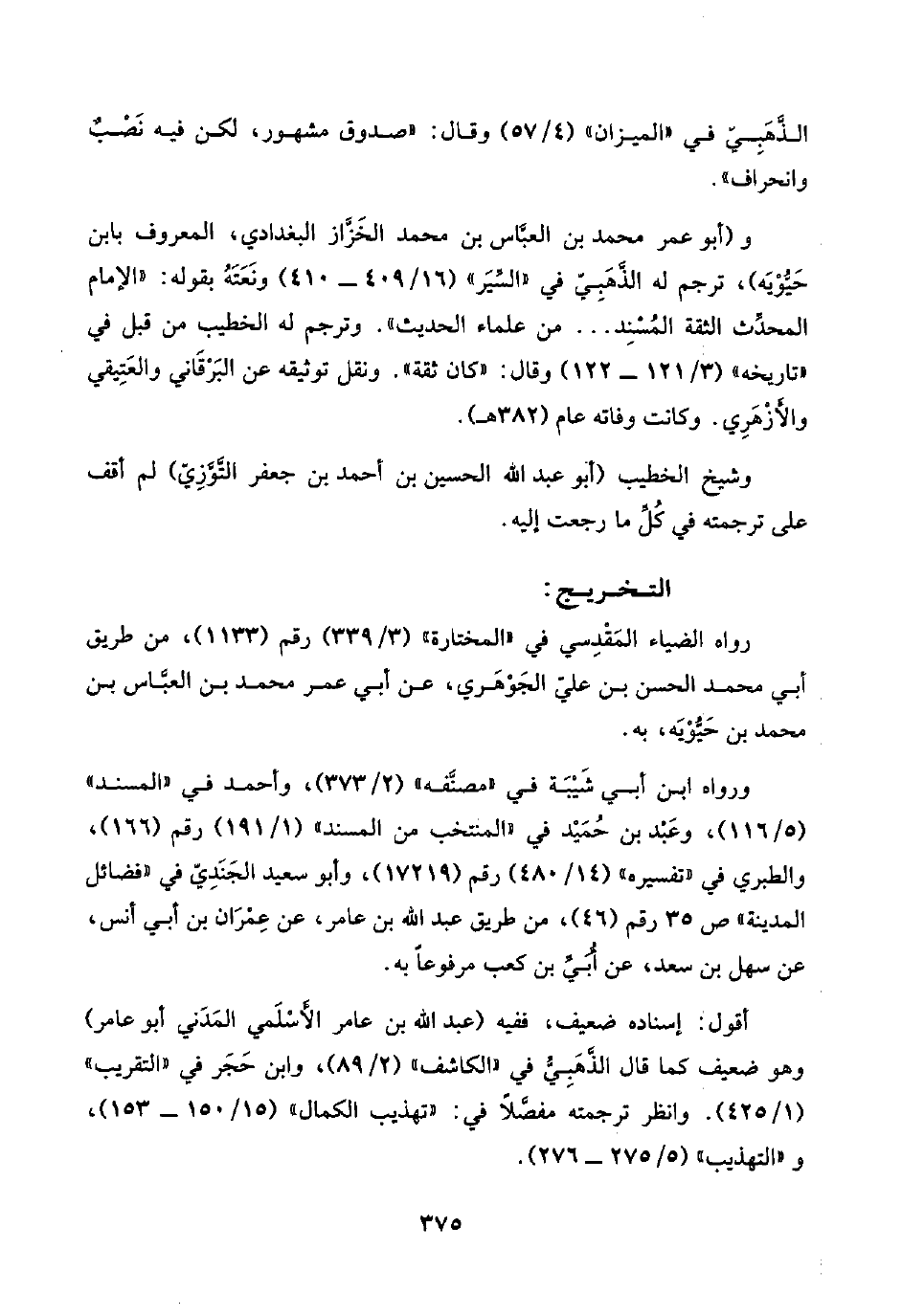 و(أبو عمر محمد بن العبَّاس بن محمد الخَزَّاز البغدادي، المعروف بابن حَيُّوْيَه)، ترجم له الذَّهَبِيّ في "السِّيَر" (١٦/ ٤٠٩ - ٤١٠) ونَعَتَهُ بقوله: "الإمام المحدِّث الثقة المُسْنِد. . . من علماء الحديث". وترجم له الخطيب من قبل في تاريخه (٣/ ١٢١ - ١٢٢) وقال: "كان ثقة". ونقل توثيقه عن البَرْقَاني والعَتِيقي والأَزْهَرِي. وكانت وفاته عام (٣٨٢ هـ).