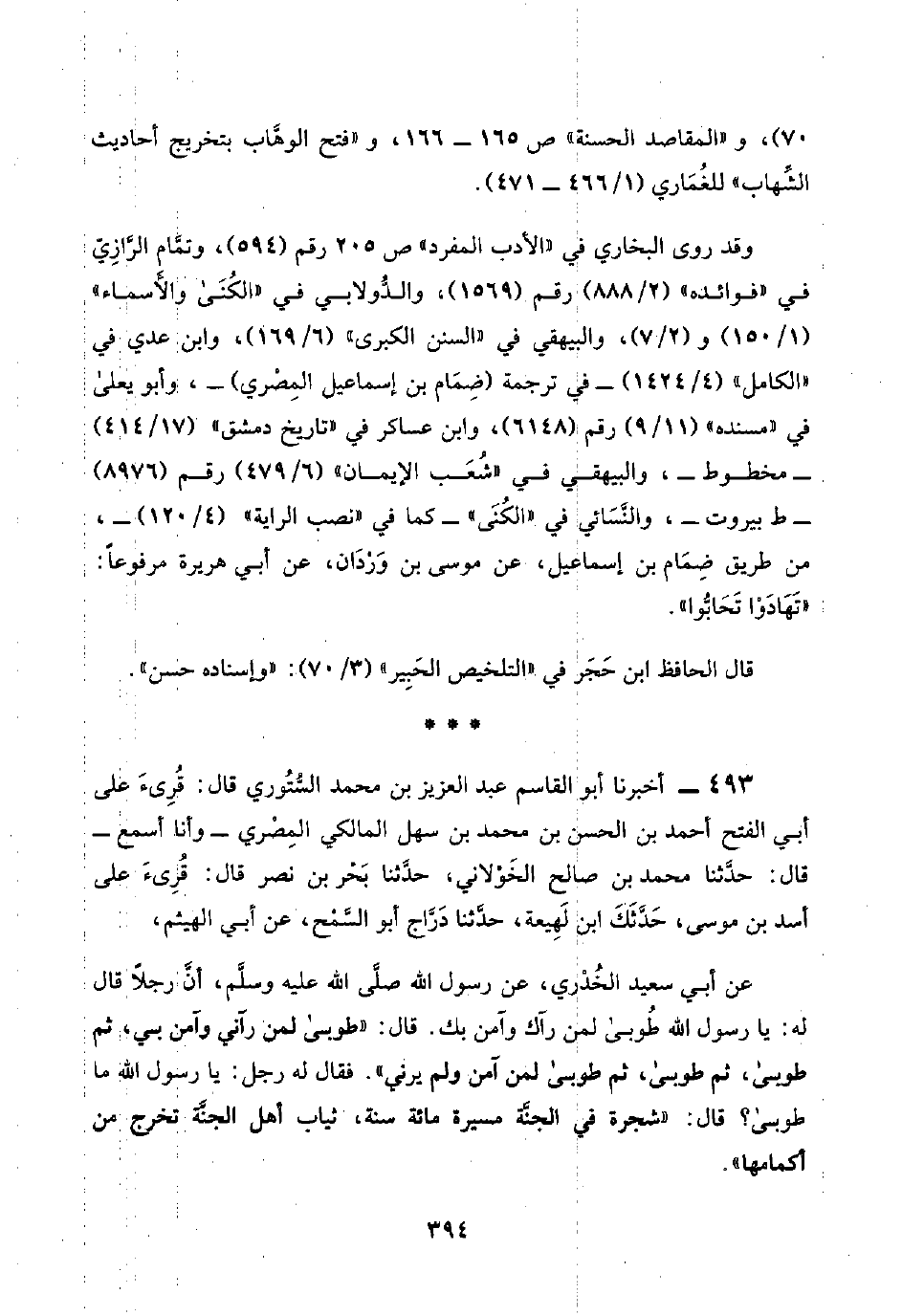 ٤٩٣ - أخبرنا أبو القاسم عبد العزيز بن محمد السُّتُوري قال: قُرِئَ على أبي الفتح احمد بن الحسن بن محمد بن سهل المالكي المِصْري -وأنا أسمع- قال: حدَّثنا محمد بن صالح الخَوْلاني، حدَّثنا بَحْر بن نصر قال: قُرِئَ على أسد بن موسى، حَدَّثَكَ ابن لَهِيعة، حدَّثنا دَرَّاج أبو السَّمْح، عن أبي الهيثم،