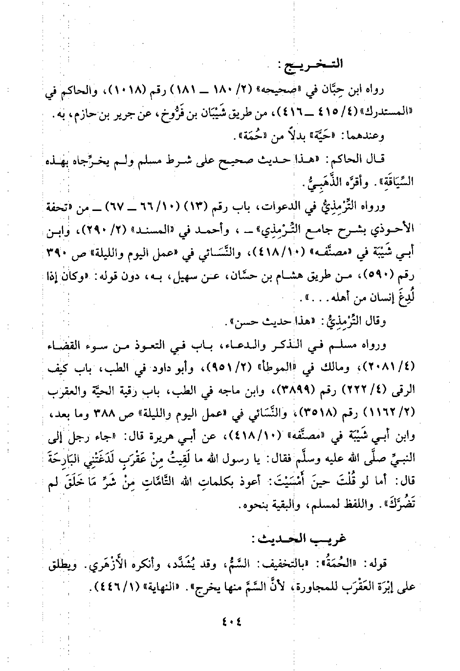 ورواه التِّرْمِذِيُّ في الدعوات، باب رقم (١٣) (١٠/ ٦٦ - ٦٧) -من "تحفة الأحوذي بشرح جامع التِّرْمِذِي-، وأحمد في "المسند" (٢/ ٢٩٠)، وابن أبي شَيْبَة في "مصنَّفه" (١٠/ ٤١٨)، والنَّسَائي في "عمل اليوم والليلة" ص ٣٩٠ رقم (٥٩٠)، من طريق هشام بن حسَّان، عن سهيل، به، دون قوله: "وكان إذا لُدِغَ إنسان من أهله. . . ".