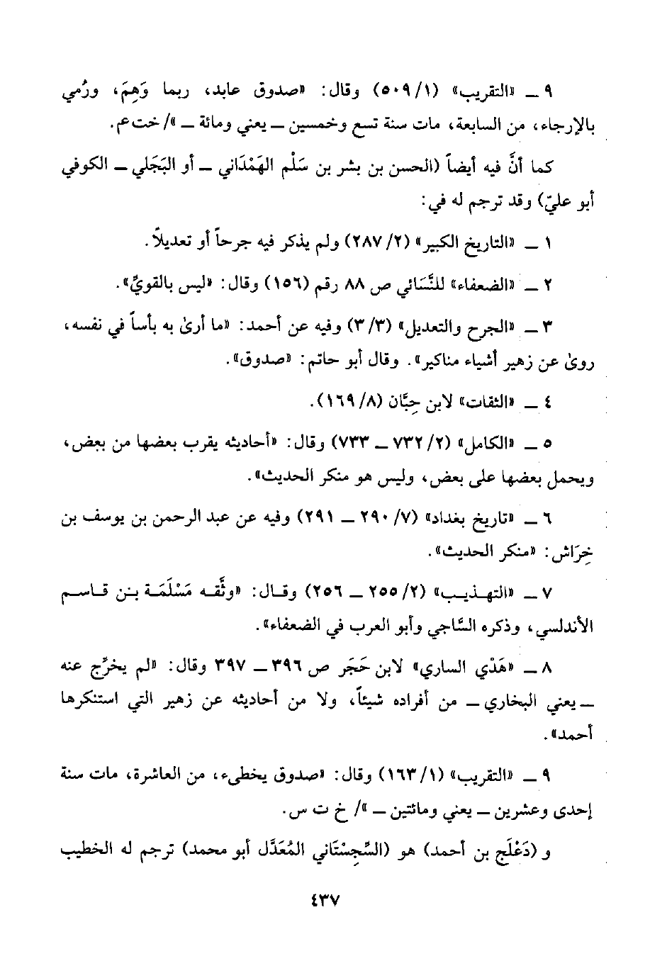 ٧ - "التهذيب" (٢/ ٢٥٥ - ٢٥٦) وقال: "وثَّقه مَسْلَمَة بن قاسم الأندلسي، وذكره السَّاجي وأبو العرب في الضعفاء".