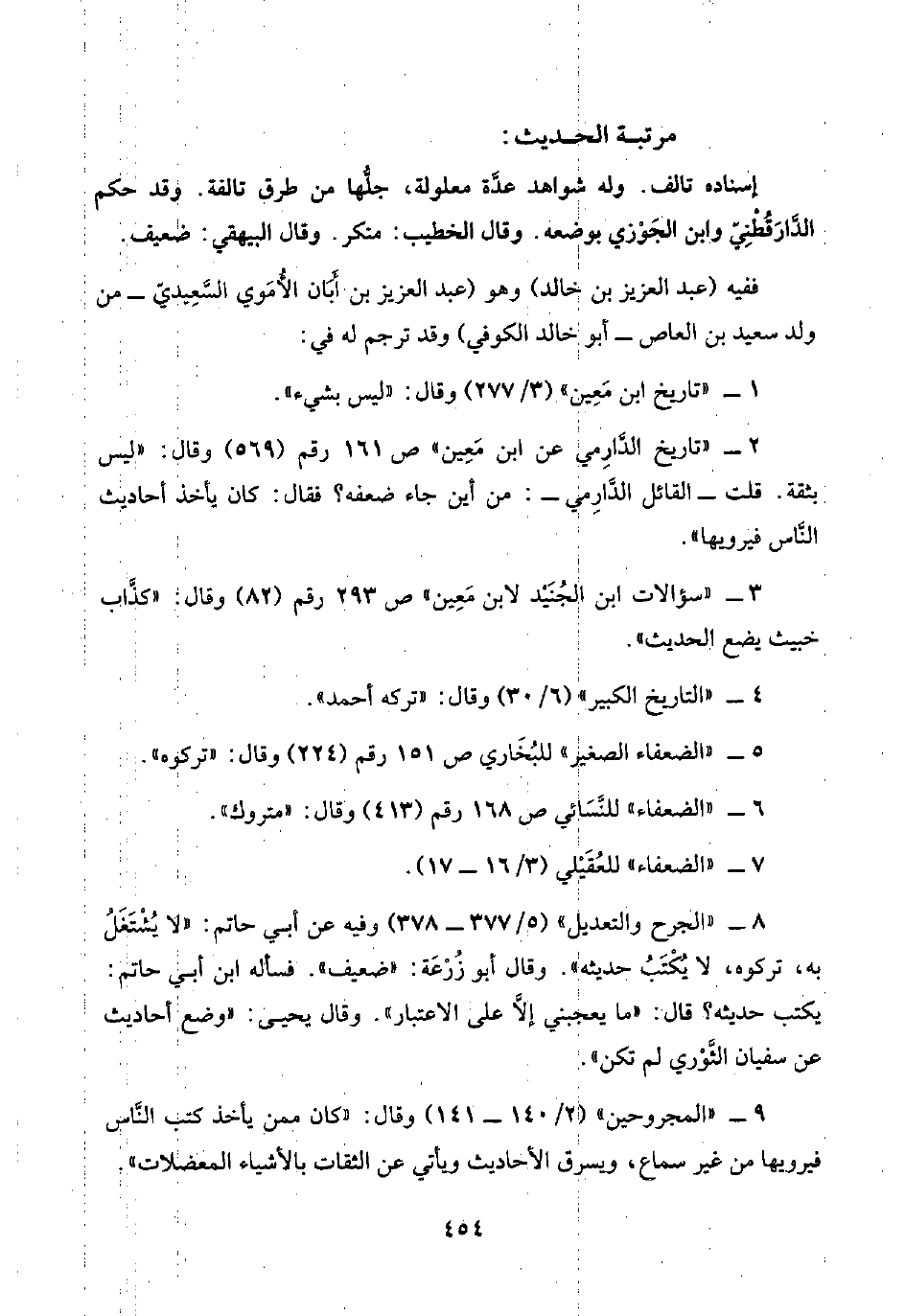 ٦ - "الضعفاء" للنَّسَائي ص ١٦٨ رقم (٤١٣) وقال: "متروك".