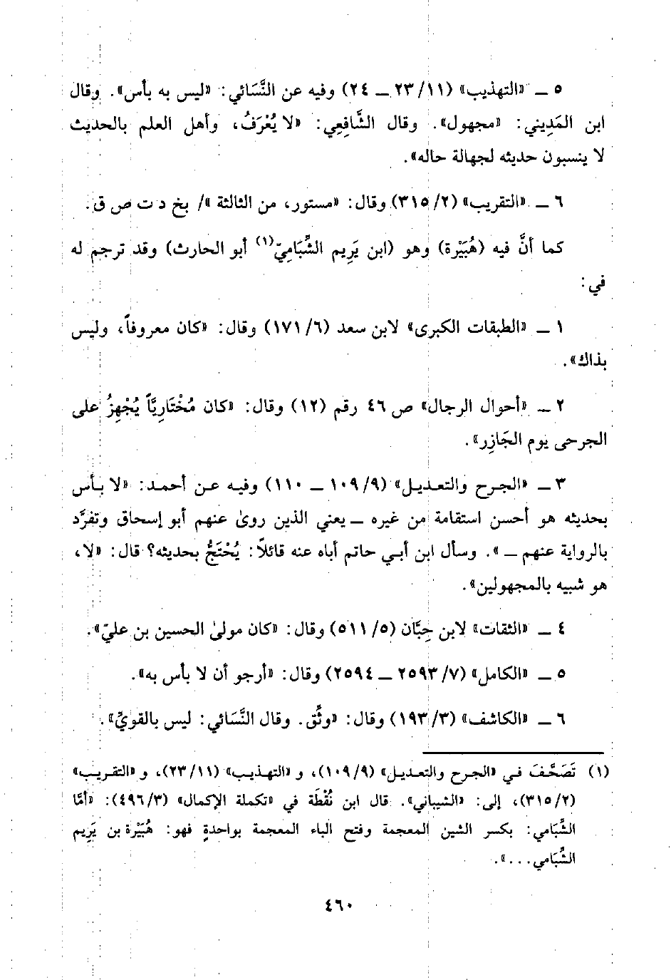 (¬١) تَصَحَّفَ في "الجرح والتعديل" (٩/ ١٠٩)، و"التهذيب" (١١/ ٢٣)، و"التقريب" (٢/ ٣١٥)، إلى: "الشيباني". وقال ابن نُقْطَة في "تكملة الإكمال" (٣/ ٤٩٦): "أمَّا الشِّبَامي: بكسر الشين المعجمة وفتح الباء المعجمة بواحدةٍ فهو: هُبَيْرة بن يَريِم الشِّبَامي. . ".