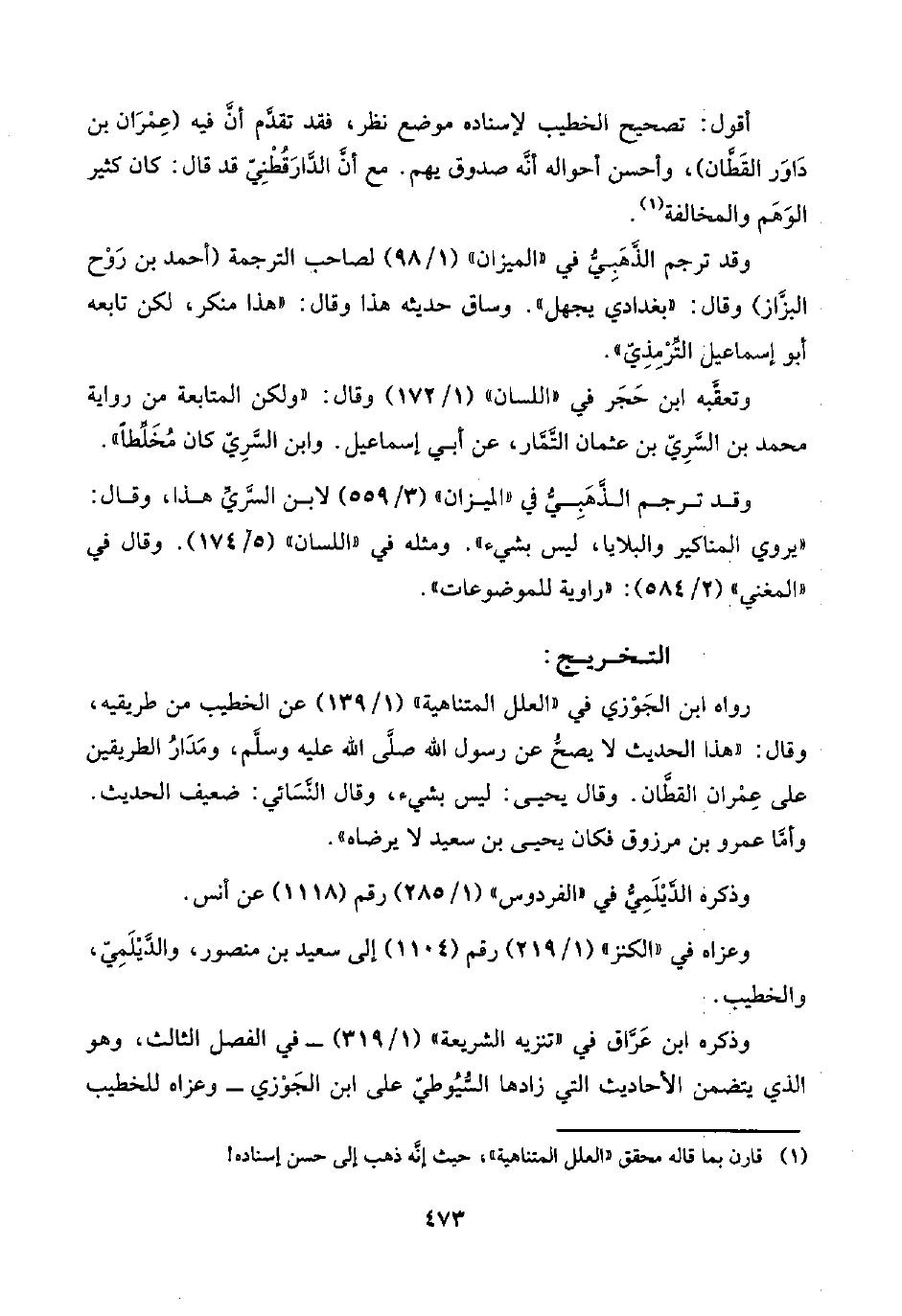 (¬١) قارن بما قاله محقق "العلل المتناهية"، حيث إنَّه ذهب إلى حسن إسناده!