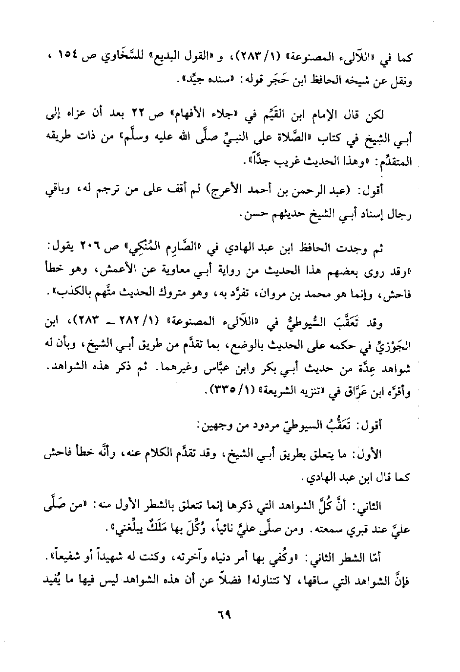 الثاني: أنَّ كُلَّ الشواهد التي ذكرها إنَّما تتعلق بالشطر الأول منه: "من صَلَّى عليَّ عند قبري سمعته. ومن صلَّى عليَّ نائيًا، وُكِّلَ بها مَلَكٌ يبلِّغني".